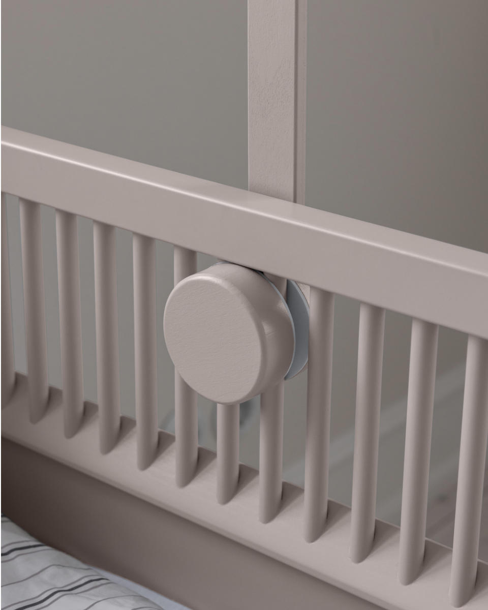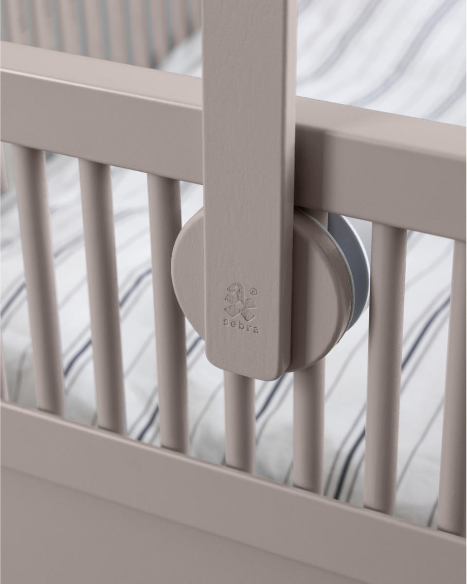 Die Handhabung könnte nicht einfacher sein: Der Halter lässt sich mit wenigen Handgriffen zwischen den Gitterstäben des Sebra Junior & Grow Betts oder fast jedes anderen Gitterbettes festklemmen. Ein besonderes Detail sind die gepolsterten Scheiben an den Fixierpunkten. Diese sorgen nicht nur für einen bombenfesten Halt, sondern schützen gleichzeitig das Holz deines Bettes vor unschönen Kratzern oder Abdrücken.