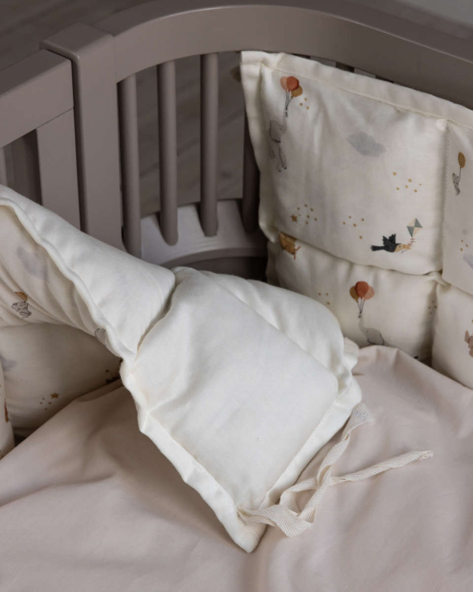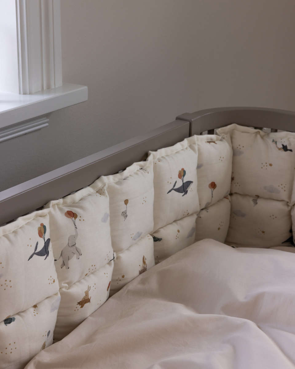 Diese atmungsaktive Bettumrandung von Sebra passt ideal in das Sebra Baby- & Juniorbett und in ein Standard-Kinderbett mit einer Größe von 60 x 120 cm. Mit der Sebra Bettumrandung schaffst du eine gemütliche Schlafoase für dein Kleines. Dieses Bettnestchen lässt sich auch an ein kleineres Bett anpassen, indem man es, z. B. am Fußende, überlappend hinlegt.