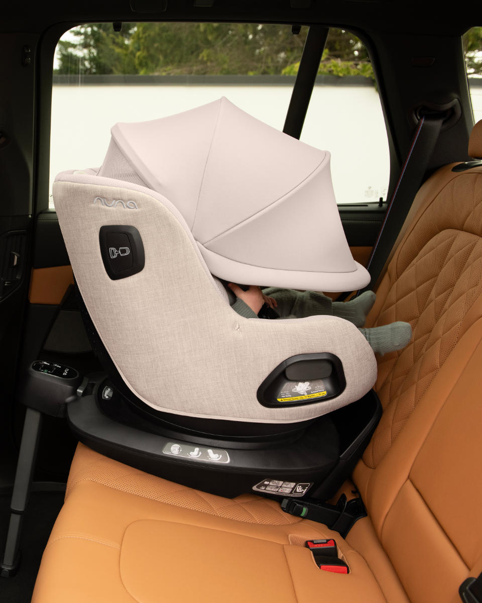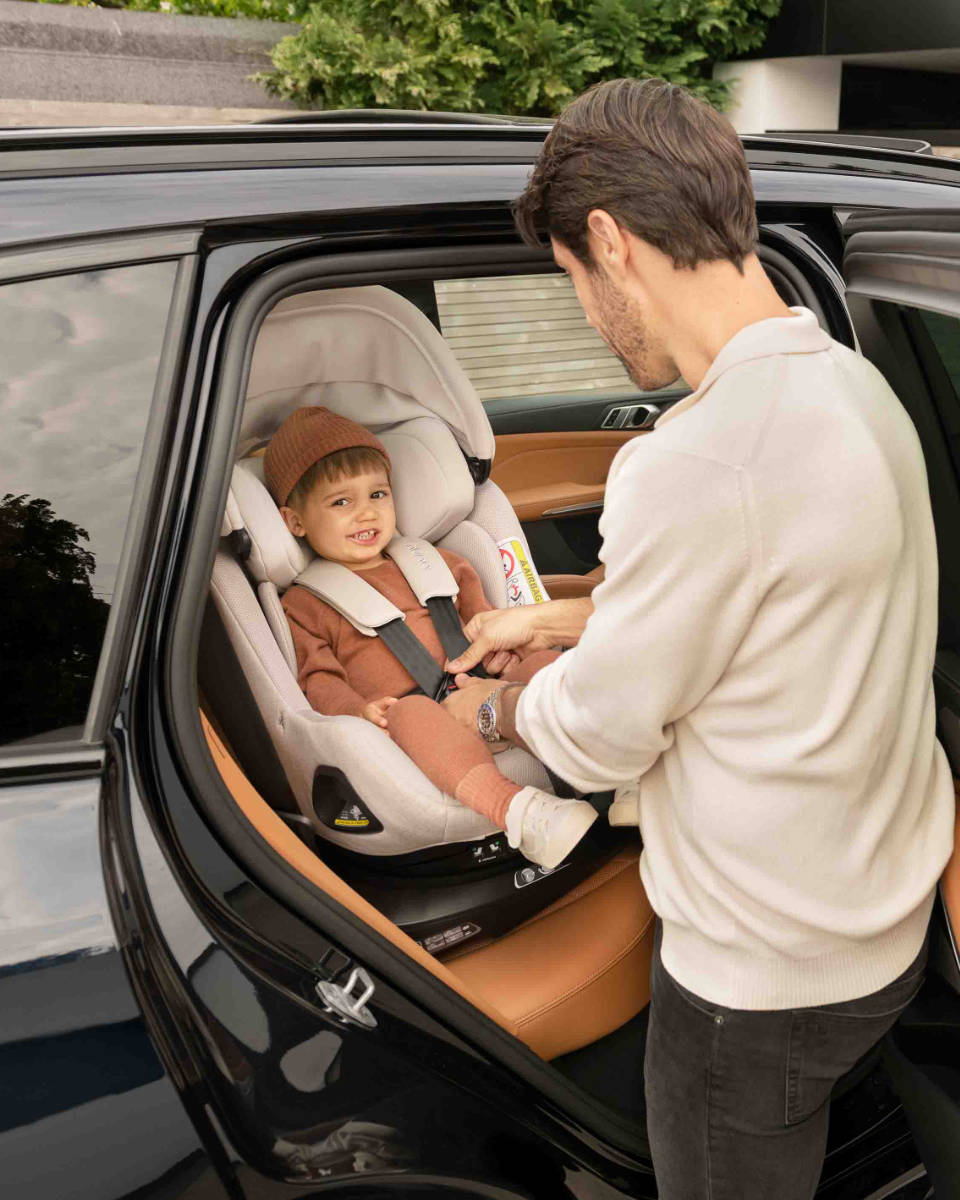 Dank der 360°-Drehfunktion wird das Hineinsetzen und Anschnallen deines Kindes zum Kinderspiel. Mit nur einem Knopfdruck drehst du den Sitz in deine Richtung und setzt dein Kind bequem hinein. Die integrierte Drehsperre sorgt dafür, dass dein Kind möglichst lange rückwärtsgerichtet fährt – für optimalen Schutz in den ersten Lebensjahren.