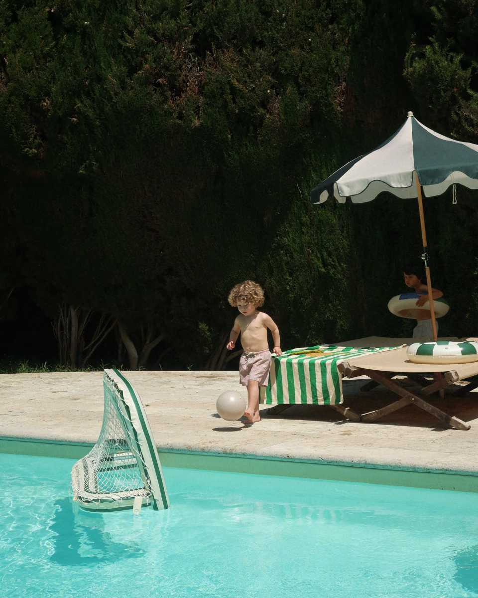 Nichts ist frustrierender als ein Tor, das ständig umkippt. Deshalb hat Konges Sløjd dieses Fußballtor mit einer stabilen schwimmenden Basis entwickelt, die dafür sorgt, dass das Tor auch bei Wellengang oder gezielten Schüssen aufrecht im Wasser stehen bleibt. Hergestellt aus robustem 100% Polyvinylchlorid (PVC), hält es auch dem wildesten Toben problemlos stand. Im Set ist zudem ein passender, leichter Ball enthalten, damit das Spiel sofort beginnen kann.