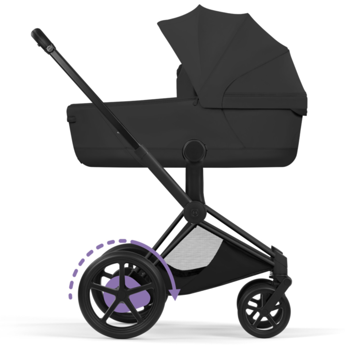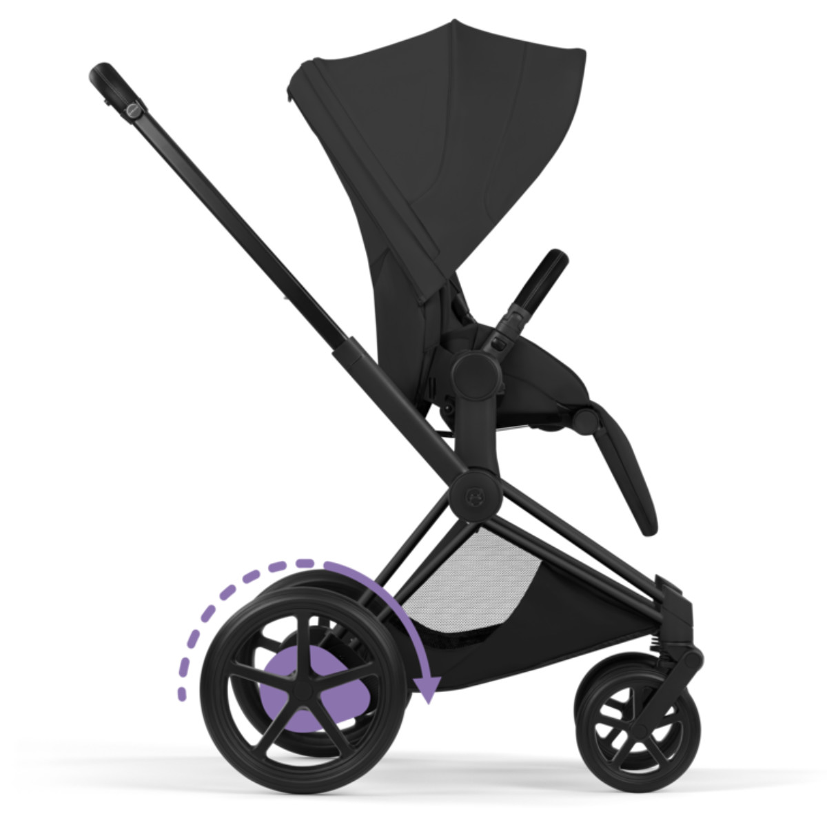 Dank Allradfederung und intelligenter Technologie gleitet der e-Priam sanft über jeden Untergrund. Unebenheiten werden effektiv abgefedert, sodass dein Kind jederzeit komfortabel unterwegs ist.
