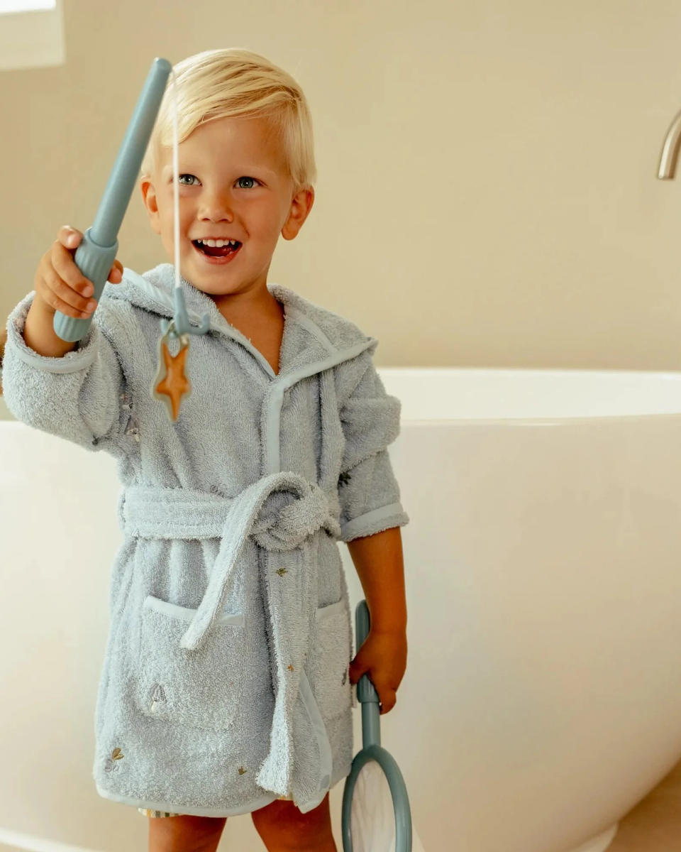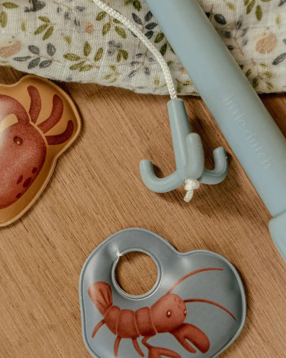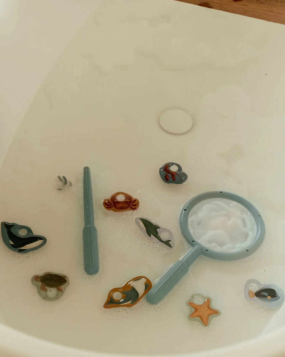 Catch it! With the Little Dutch Bath Fishing Game, every bath time becomes a cheerful adventure. The set includes a fishing rod, a net, and eight colorful figures shaped like sea creatures. Catching, scooping, and discovering – little hands will have endless fun while developing their motor skills through play.