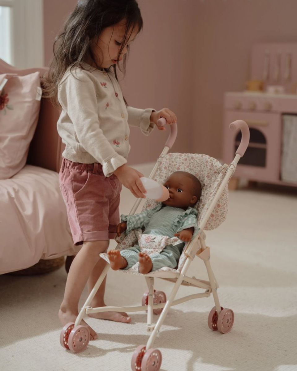 Watch as your toddler joyfully pushes the doll stroller around, sings lullabies, and pauses to feed or comfort their pretend baby, displaying an infectious tenderness and imagination. All this while learning valuable life skills through magical play. The Little Dutch Metal Doll Stroller is more than just a toy; it is a tool that aids in the development of your child's social and emotional skills.