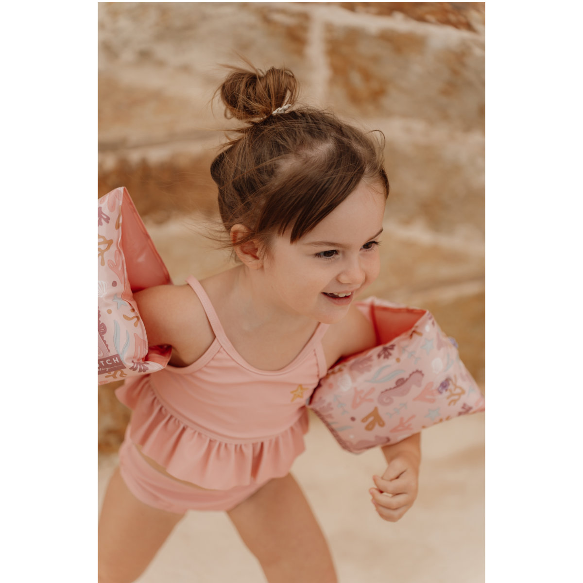 The Little Dutch Swim Wings in the charming "Ocean Dreams" design accompany your child on their first water adventures. Decorated with cheerful sea creatures, they provide not only safety but also joy at the pool, beach, or lake.