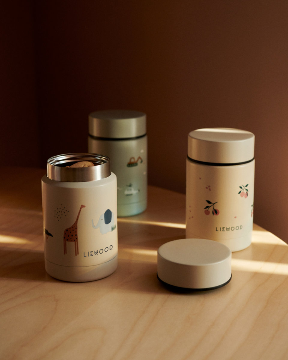 Sweet and practical food jar in stainless steel. The Liewood food jar has double wall stainless steel and is super practical and perfect for bringing porridge or little snacks on a day out. It serves a highly functional purpose as it can store hot items up to 6 hours and cold items up to 8 hours. The food jar will be delivered in a beautiful box.
