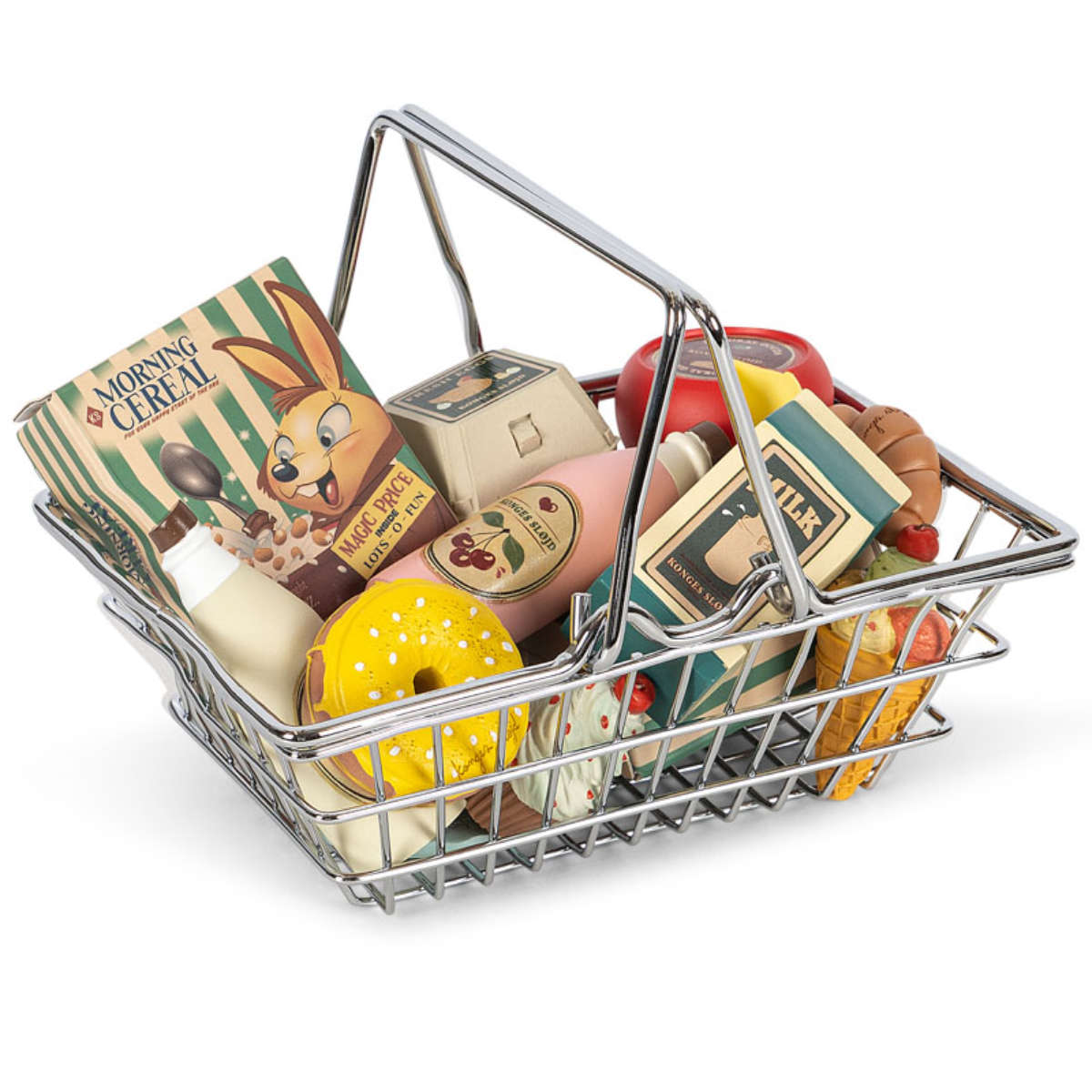 | Contents | Assortment of play food & metal basket |