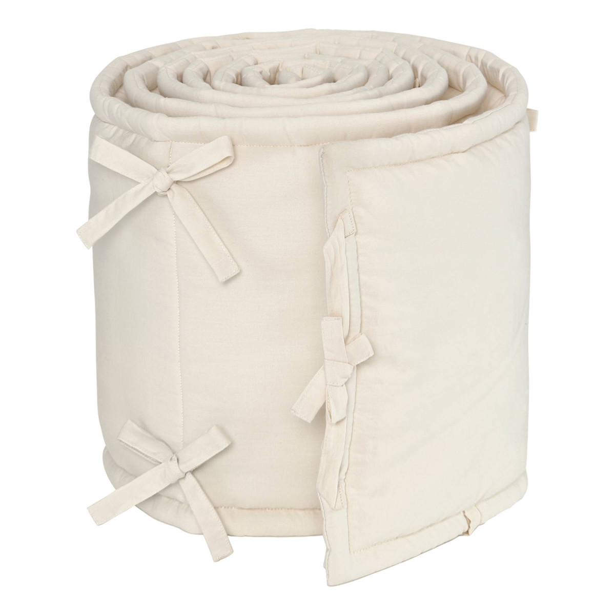 The bed bumper is made from 100% organic cotton with a soft polyester filling. The fabric is skin-friendly, breathable, and provides comfort in every sleeping situation.