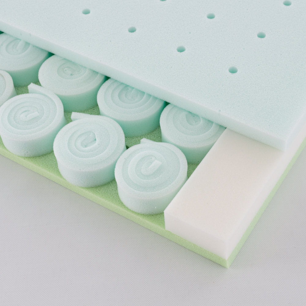 - Ventilated cold foam with free-standing comfort twists for point-elastic lying comfort.