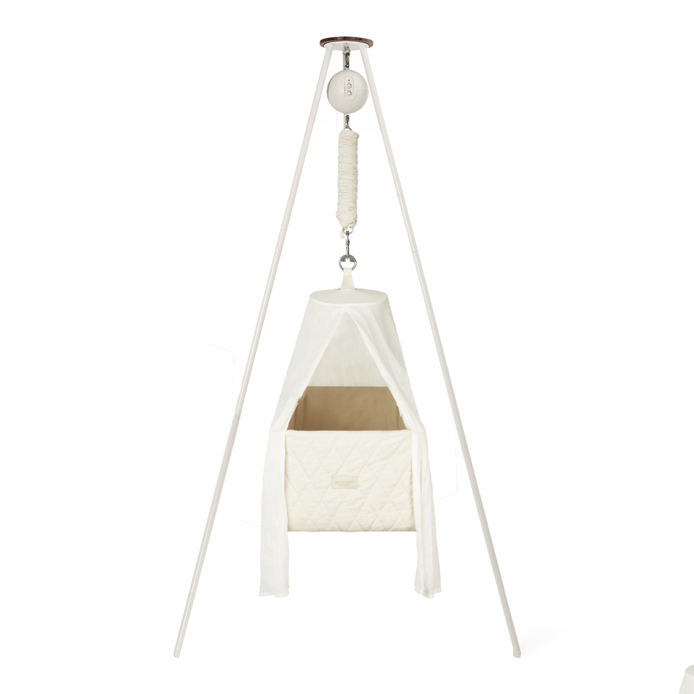 The cradle is easy to maintain and is delivered freshly washed. The cover is machine washable at 40 degrees. Metal parts should be hand-washed.