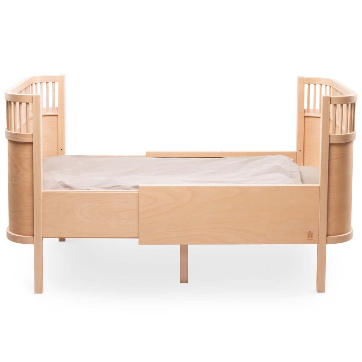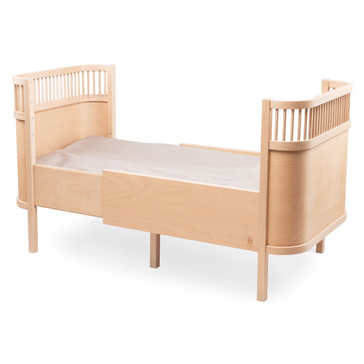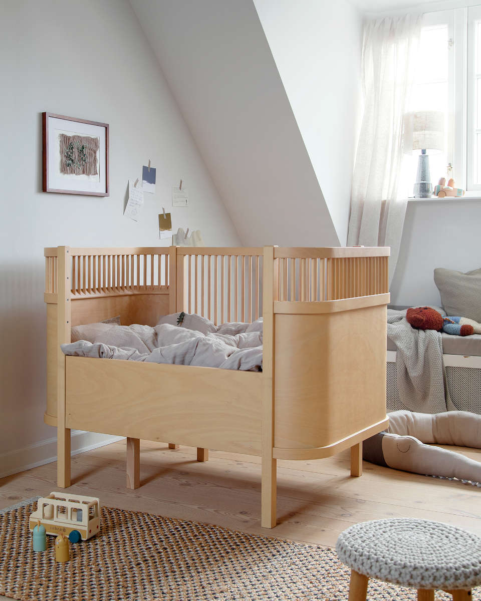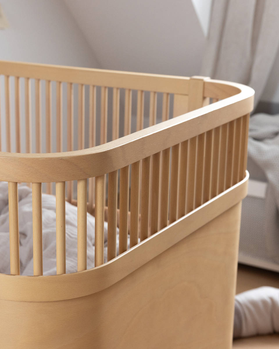 The bars on the baby cot give your child security in the first year, especially when the baby starts to move more. The bars are also shaped so that little explorers can't find support with their feet and can't climb and fall over the bars. Later, the front and back bars are a beautiful detail that makes the junior bed something special.