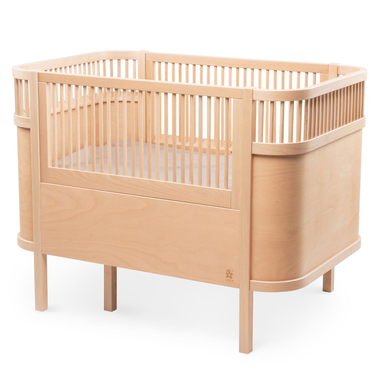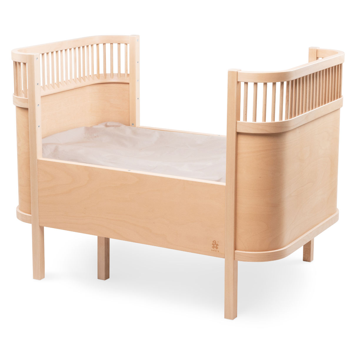 The convertible Sebra baby bed at Kindermaxx will give your child long relaxing nights, because it can easily be converted from a baby bed to a junior cot and adapted to the development stages. If you use the crib, you can simply lift the bottom of the bed so that you can lift your baby out and into the bed without strain on your back.