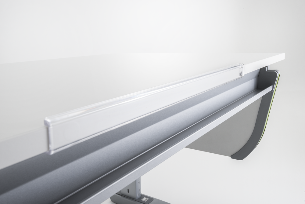 The matching anti-slip device for the Joker model is simply clamped to the Joker. This ensures that exercise books, books and pens cannot fall off, even if the tabletop is inclined.
