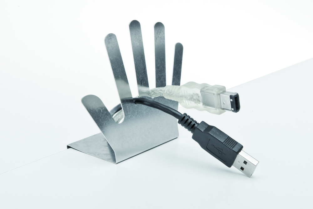 The cable butler against the cable spaghetti on the desk. The cable butler is clamped to the tabletop and ensures that the mess of cables is a thing of the past and keeps the desk tidy.