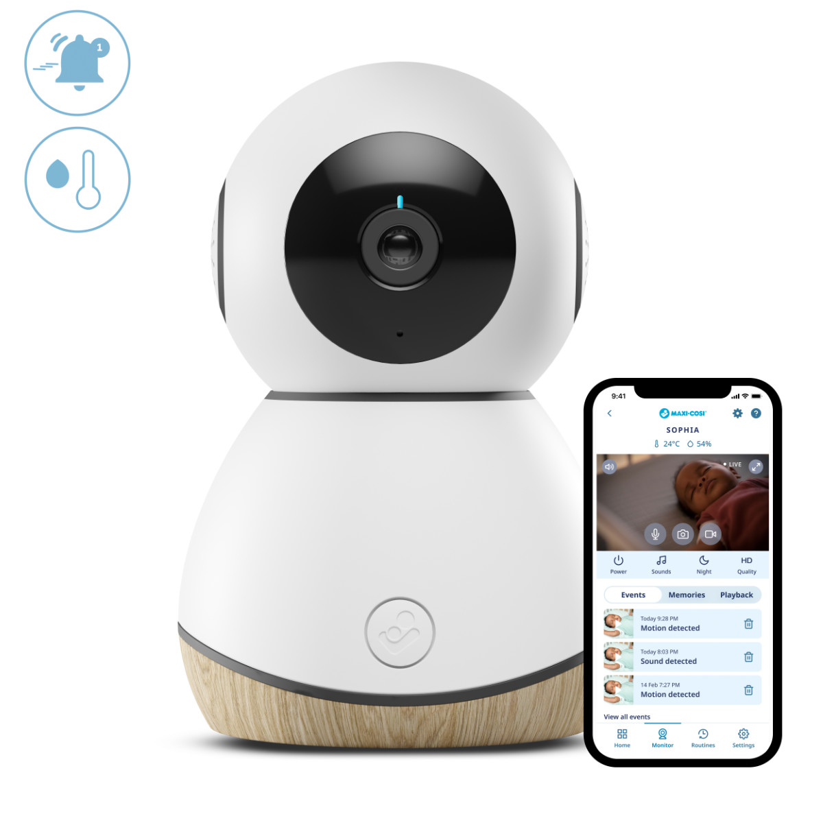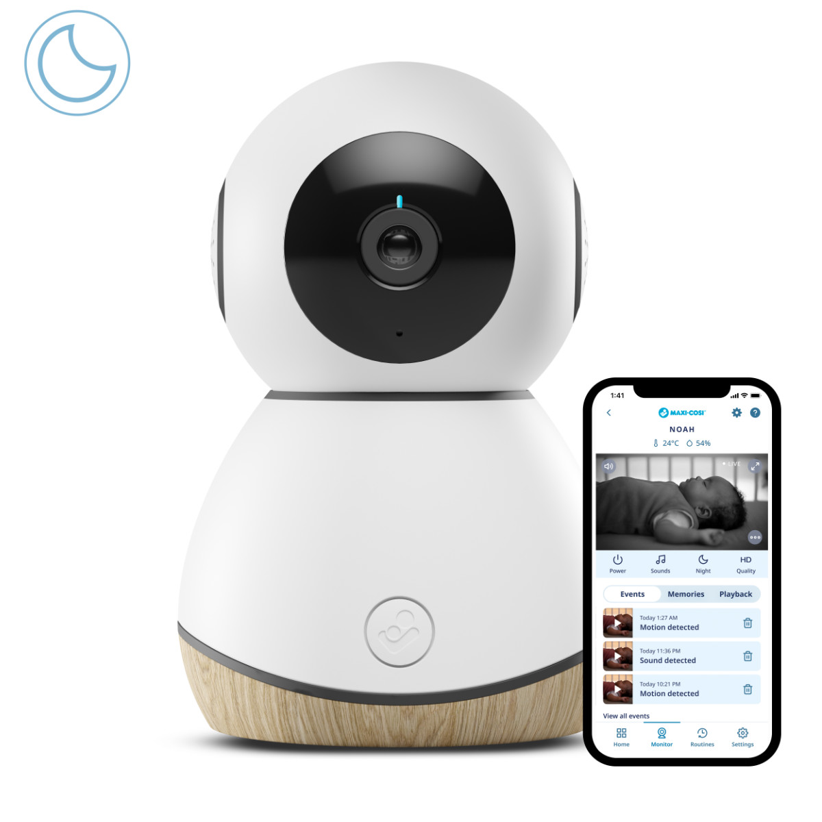 The Maxi Cosi See Baby Monitor ensures your peace of mind and your baby's well-being. Thanks to advanced technology, you can be sure that your baby always sleeps safely and comfortably. With features like day and night vision, HD live streaming, and remote camera operations such as panning, tilting, and zooming, you won't miss a smile or important moment.