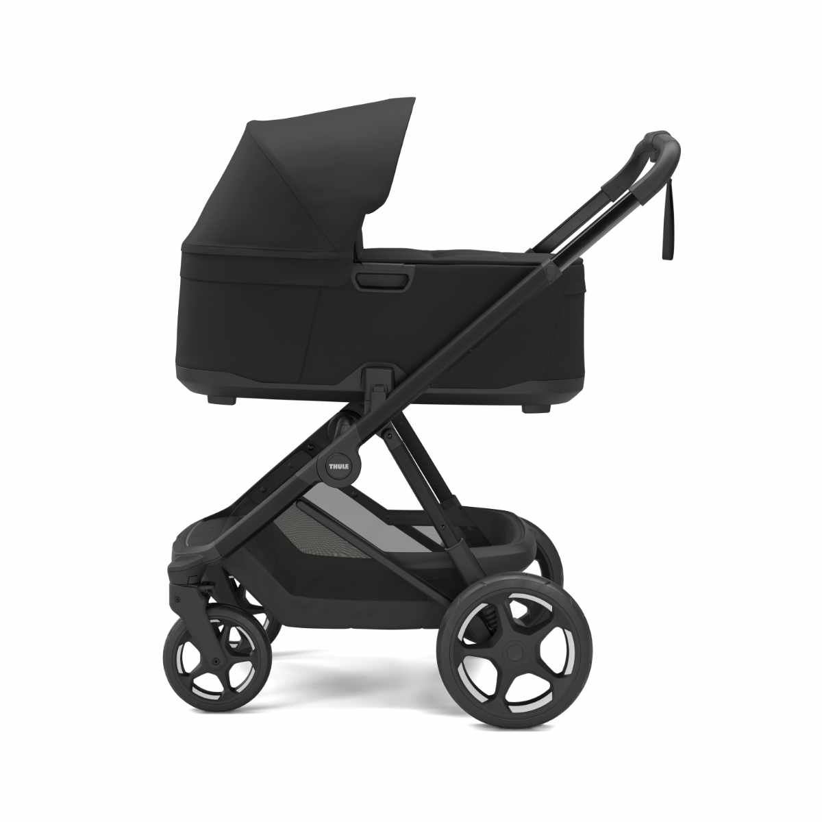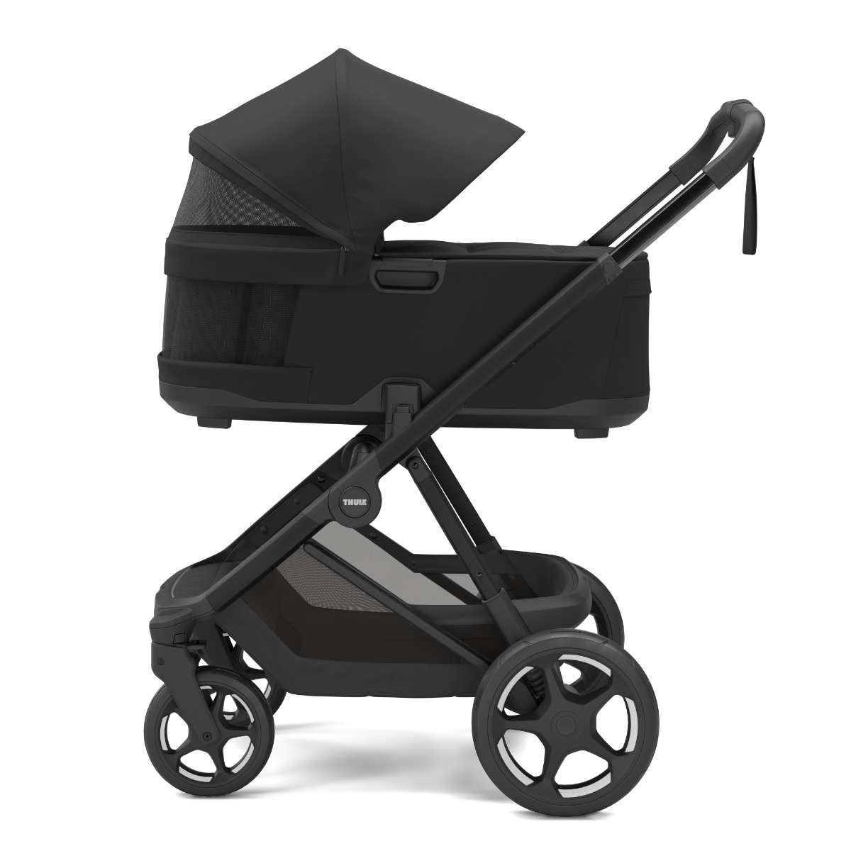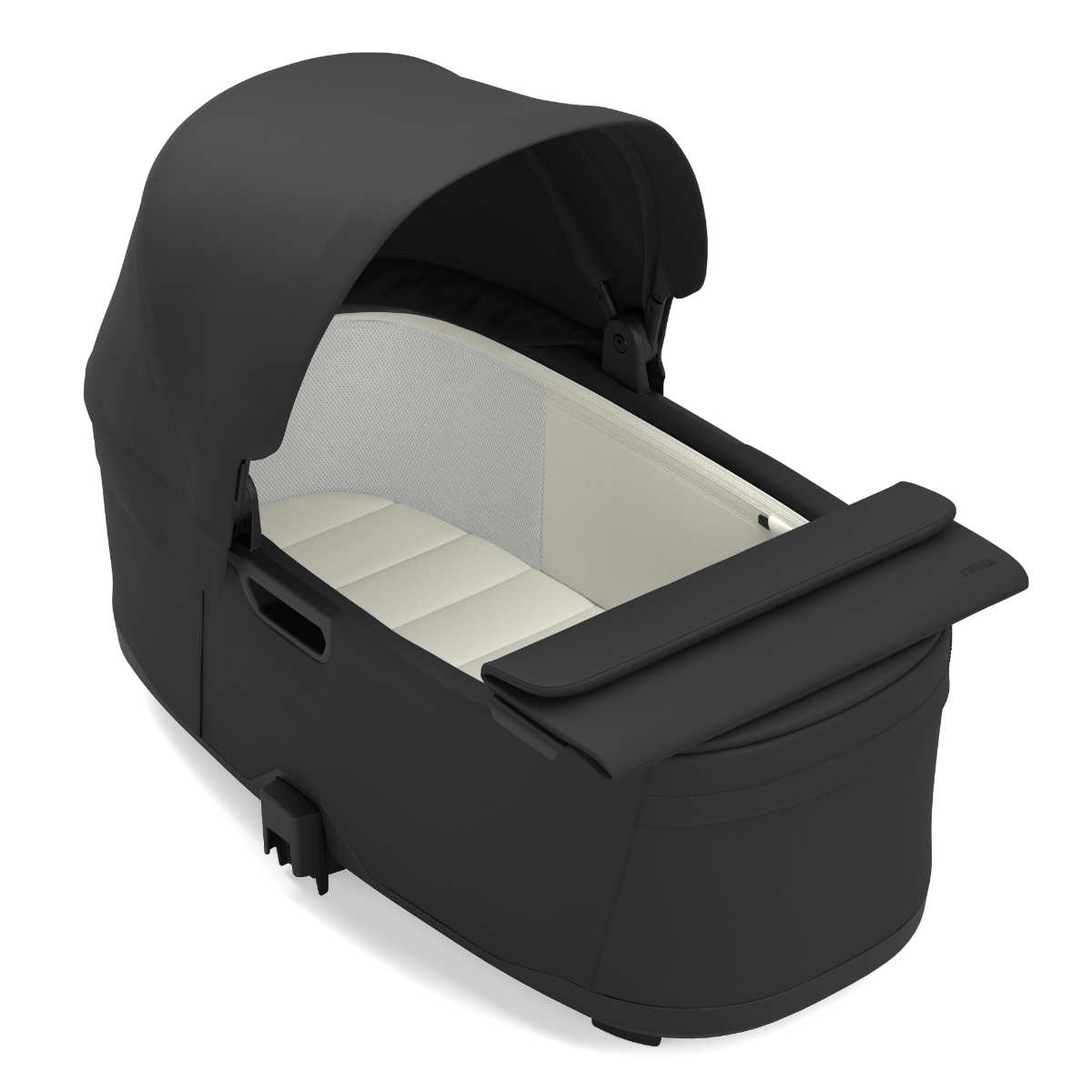 In the early days, your baby needs one thing above all: a sense of security. The specially developed Thule Charm bassinet is positioned so high on the frame that you can maintain natural eye contact at all times. This not only promotes bonding but also gives your child the necessary feeling of safety in a new environment. The bassinet impresses with its soft inner lining, breathable mesh fabric for optimal ventilation, and practical memory buttons that allow for one-handed removal – ideal if you are holding your baby on your other arm.