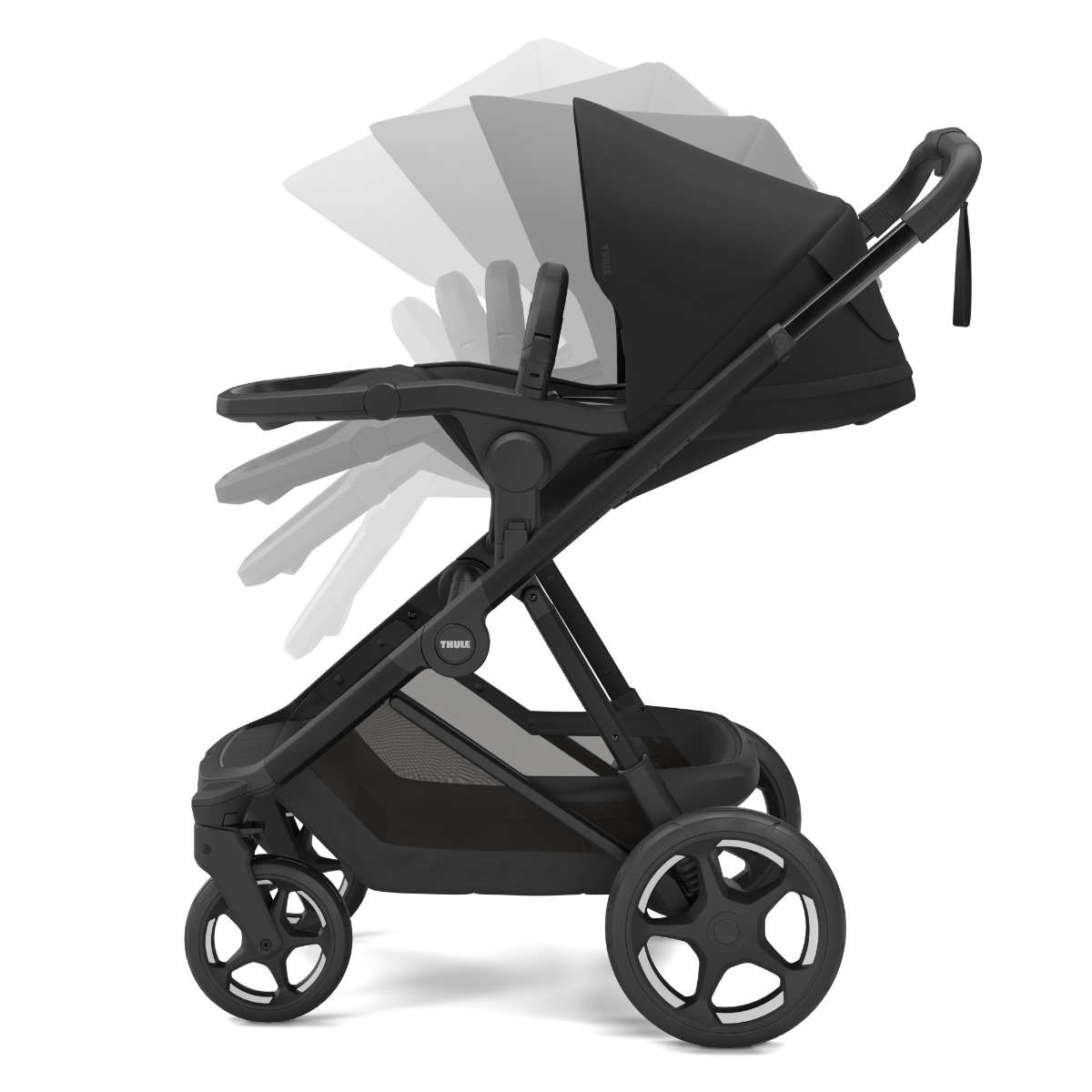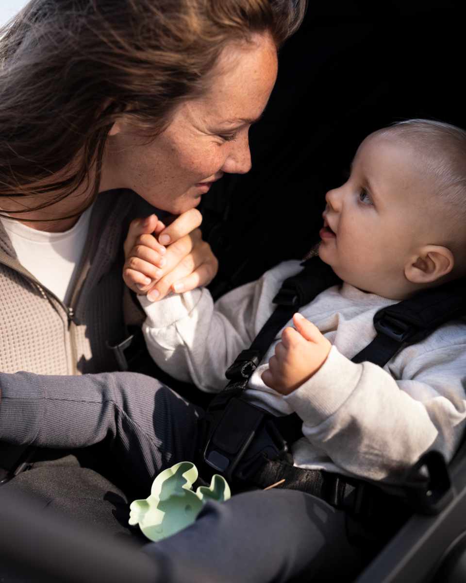 As soon as your little one becomes curious and wants to discover the world while sitting, you simply switch to the elevated toddler seat. Here, too, closeness is maintained: the seat is reversible, so your child can look at either you or the surroundings. The adjustable leg rest and flexible ventilation system ensure that even longer naps on the go remain restful. The Thule Charm adapts seamlessly to every stage of development, from a tiny infant to an active toddler weighing up to 22 kg.