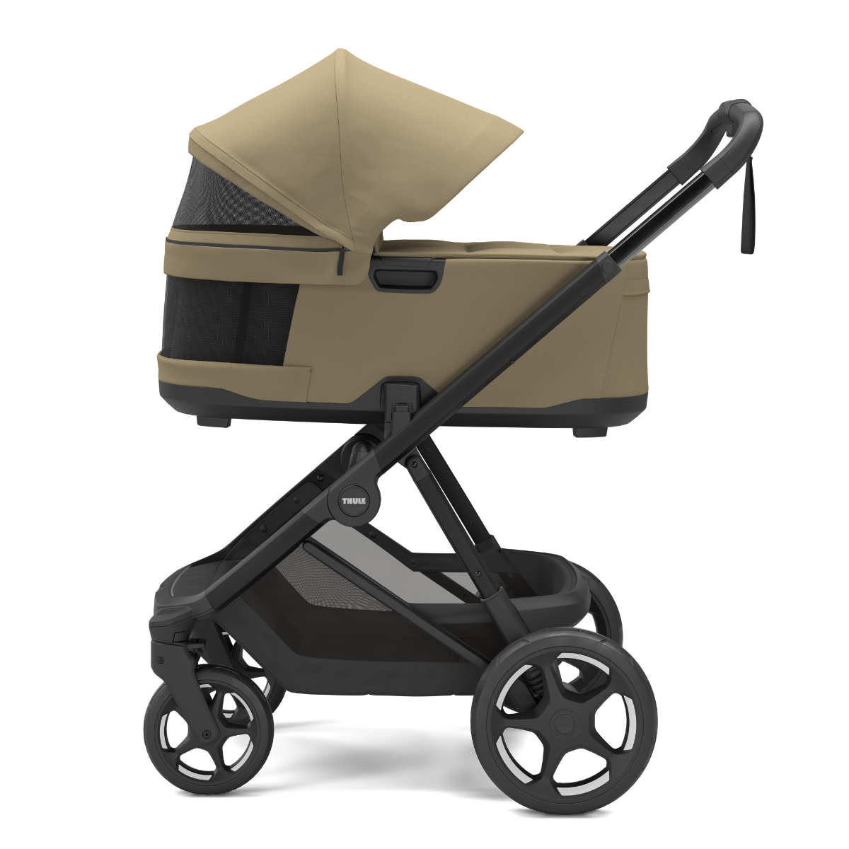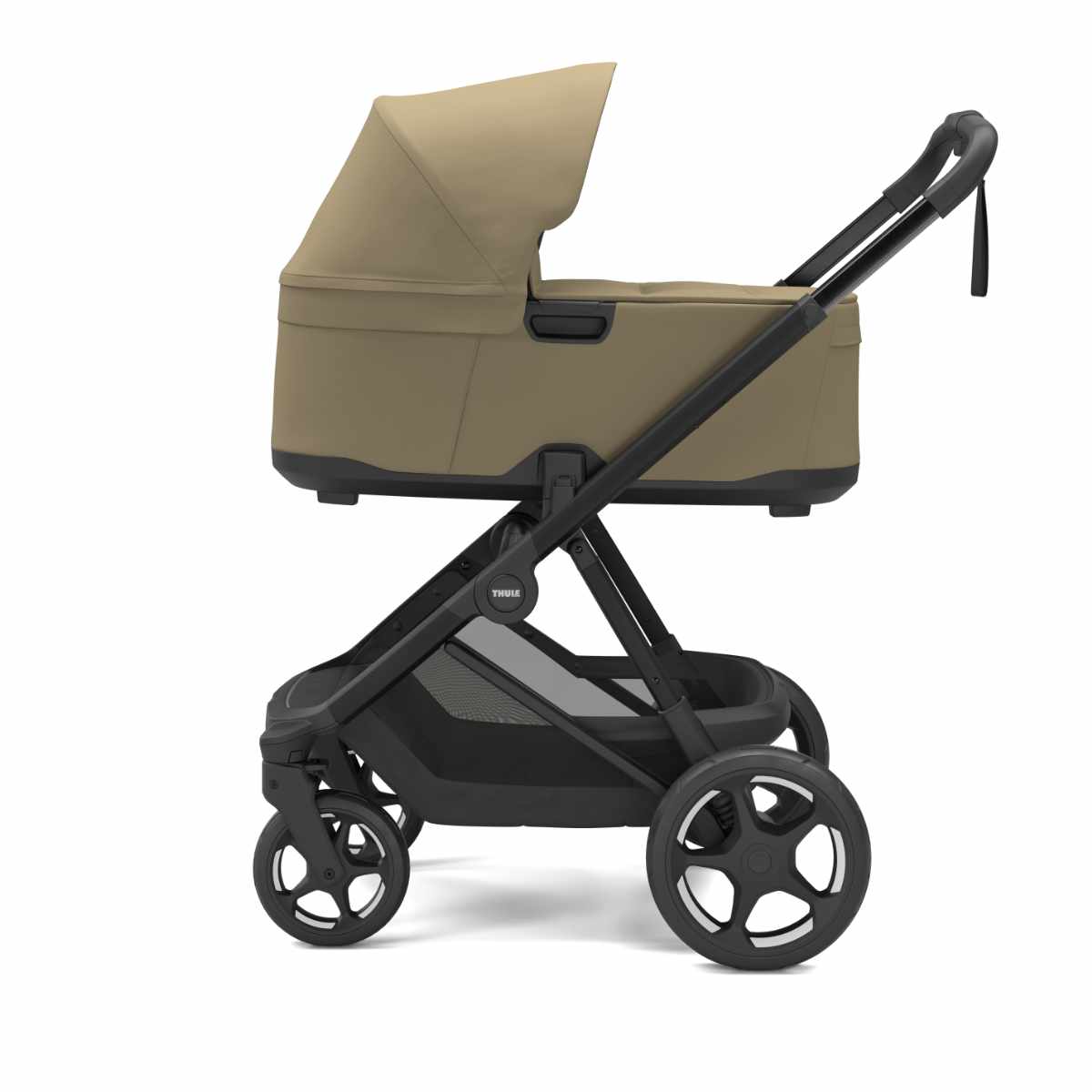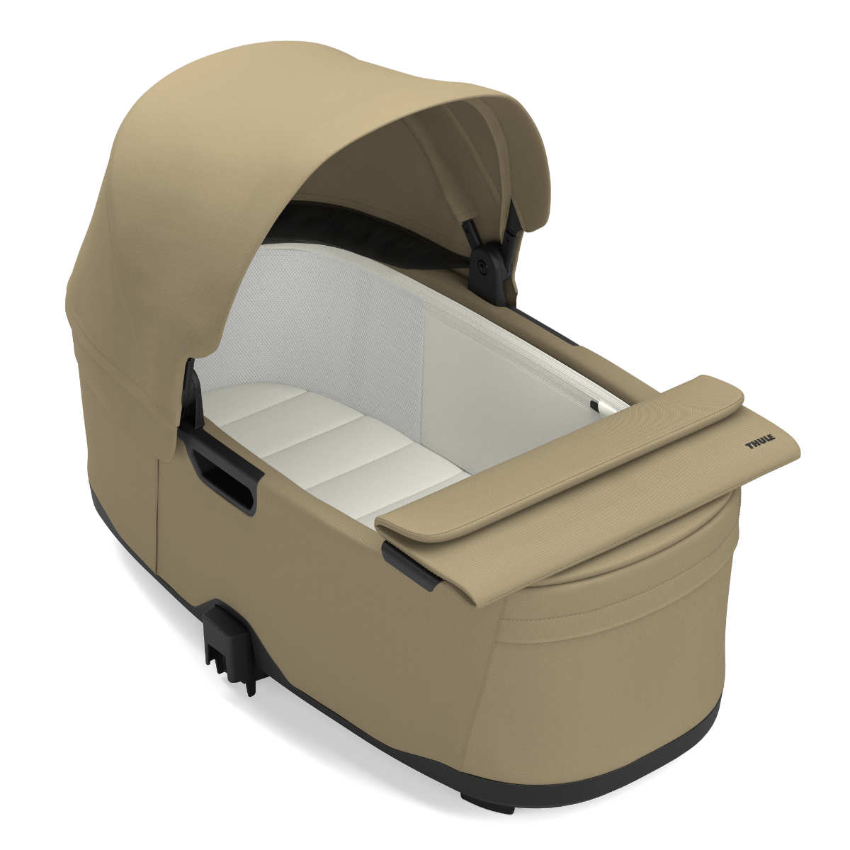 In the early days, your baby needs one thing above all: a sense of security. The specially developed Thule Charm bassinet is positioned so high on the frame that you can maintain natural eye contact at all times. This not only promotes bonding but also gives your child the necessary feeling of safety in a new environment. The bassinet impresses with its soft inner lining, breathable mesh fabric for optimal ventilation, and practical memory buttons that allow for one-handed removal – ideal if you are holding your baby on your other arm.