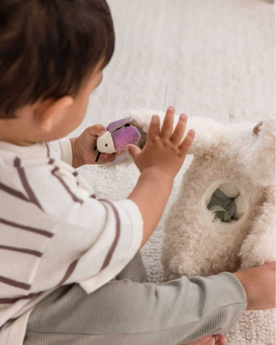 Your child will love exploring the little surprises this swan holds. On its back, it carries a small frog that can be removed and makes funny noises when shaken. But that's not all: hidden under one of the soft wings is a rattling bee in a small pocket, just waiting to be discovered during a game of hide-and-seek.