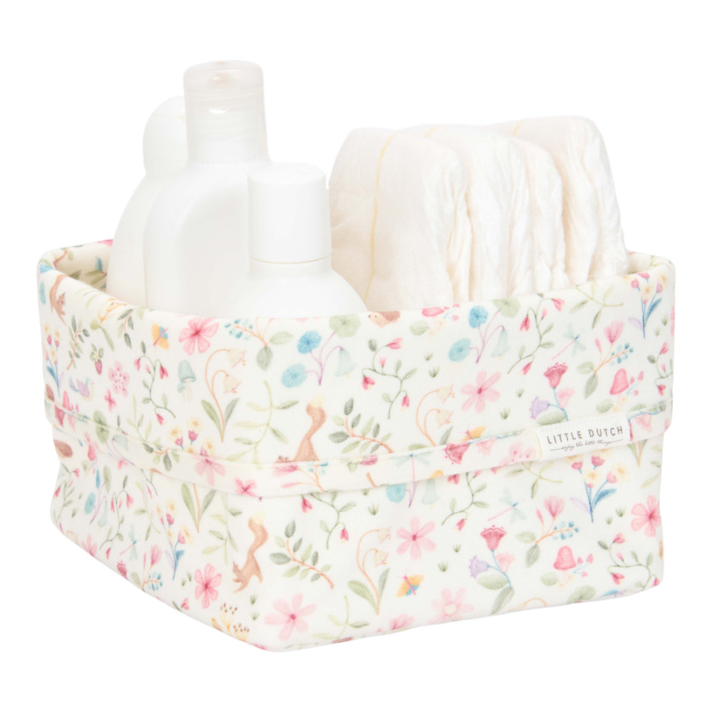 The Little Dutch care baskets keep the changing table tidy. Utensils that you use every day such as nappies, creams and bottles can be stored in the care basket. The nursing baskets are available in two different sizes and in cute designs. The matching Little Dutch changing mat cover is the perfect addition for an organised and tidy changing unit.