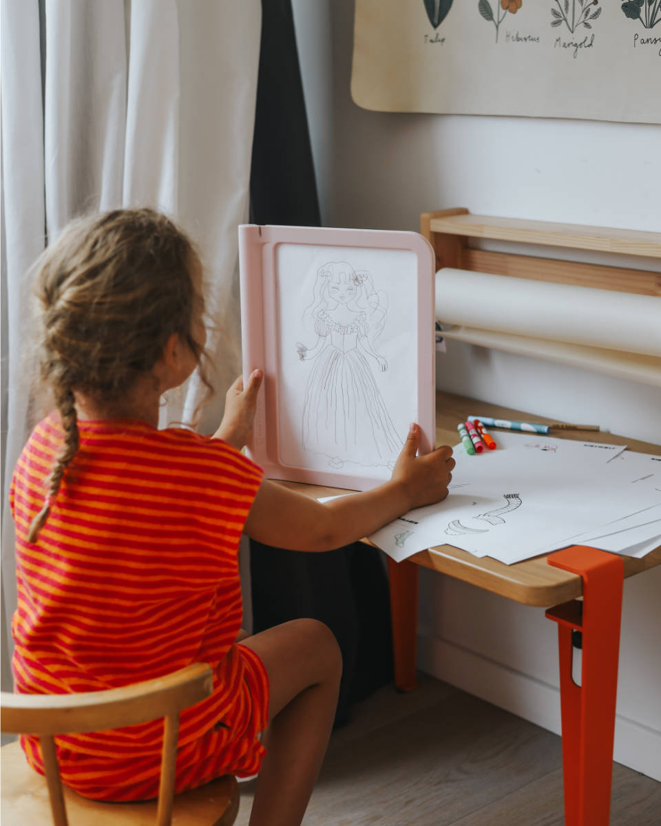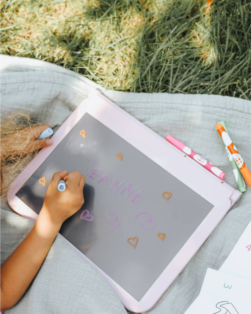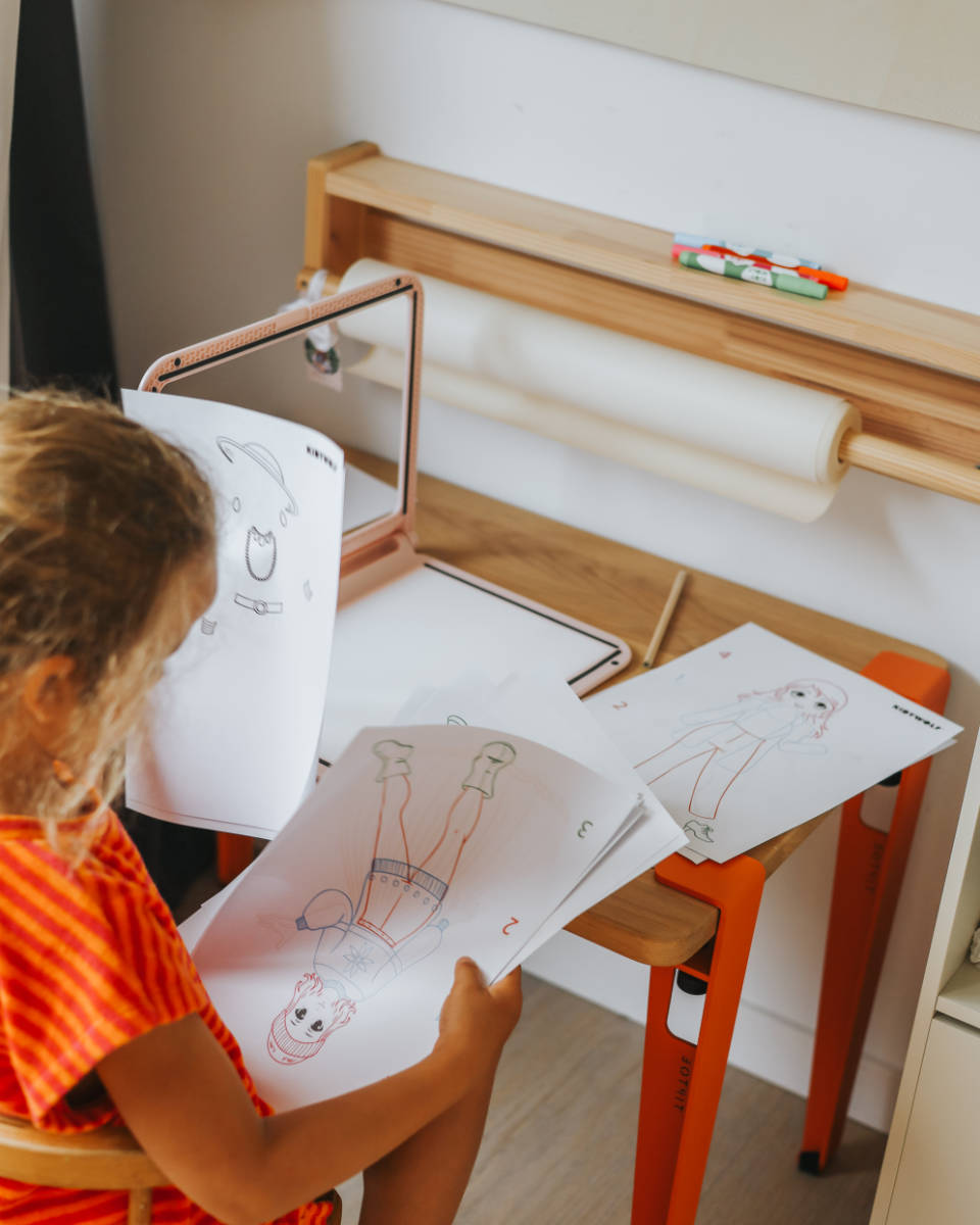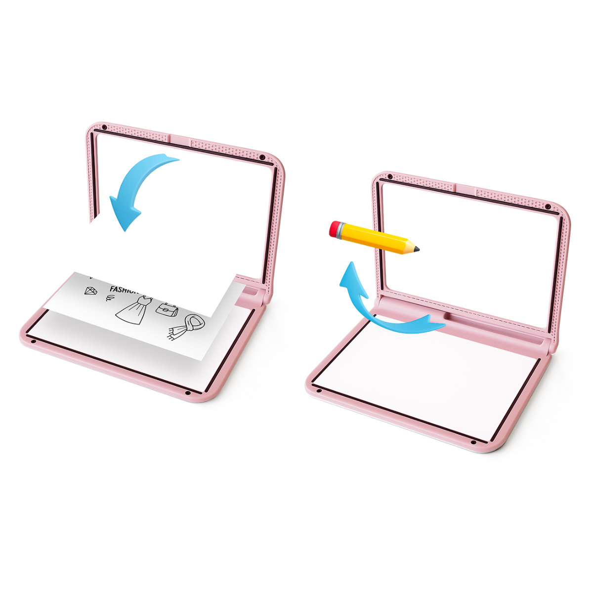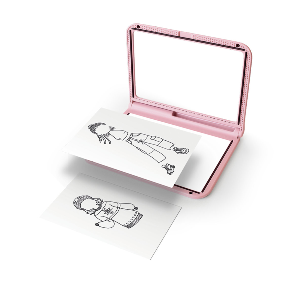 The KidyDraw Pro Green is perfect for learning and practicing – with templates for letters, numbers, and drawings. The Pink Fashion Edition turns kids into little designers: with over 1,000 combinations of silhouettes, outfits, and accessories, every design becomes a new masterpiece.
