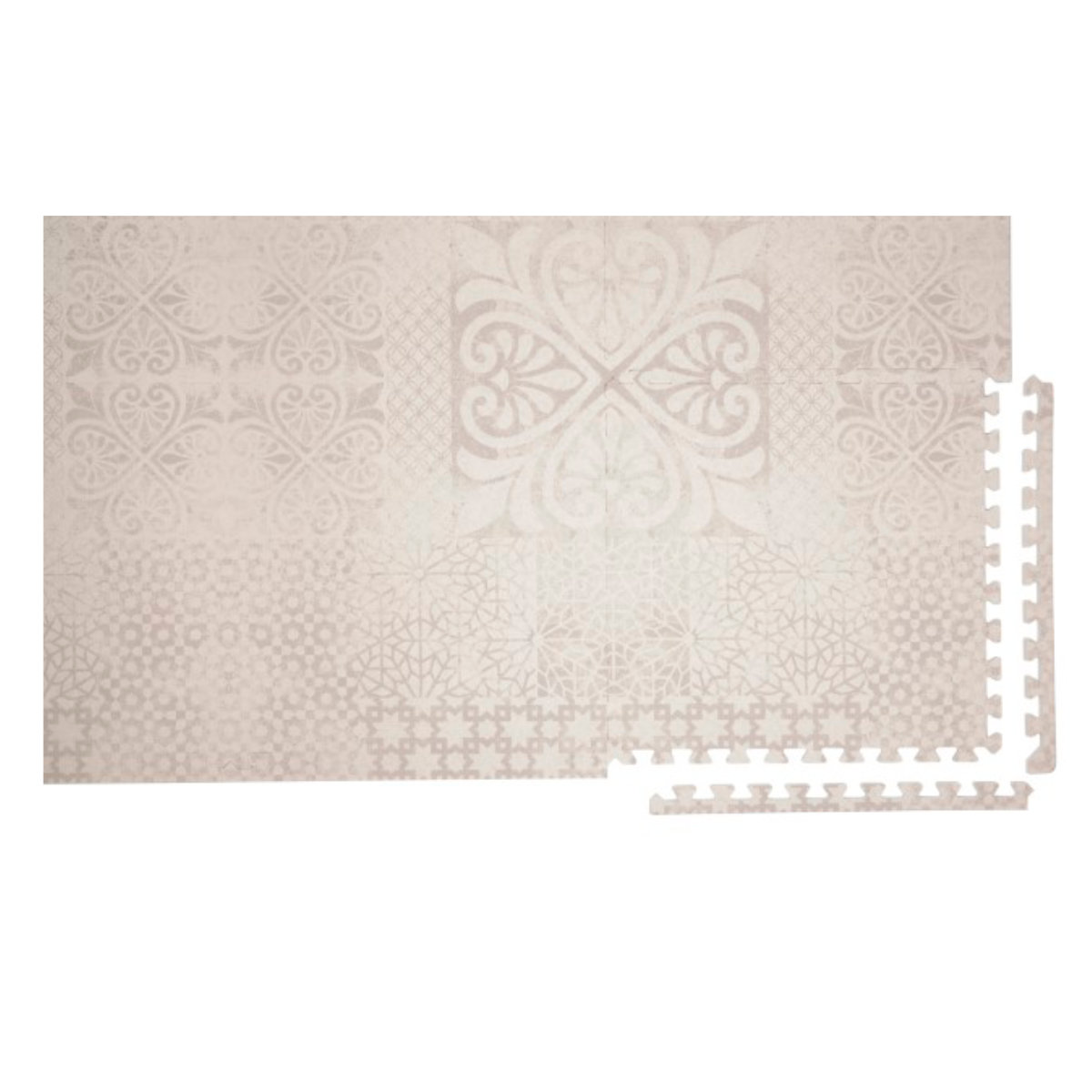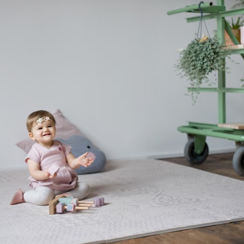 The Toddlekind Prettier Playmat in Persian design consists of six 60 x 60 cm tiles that can be put together seamlessly. To find the right size for your room and your home, you can put several mats together and combine them with each other. The size combinations are endless.