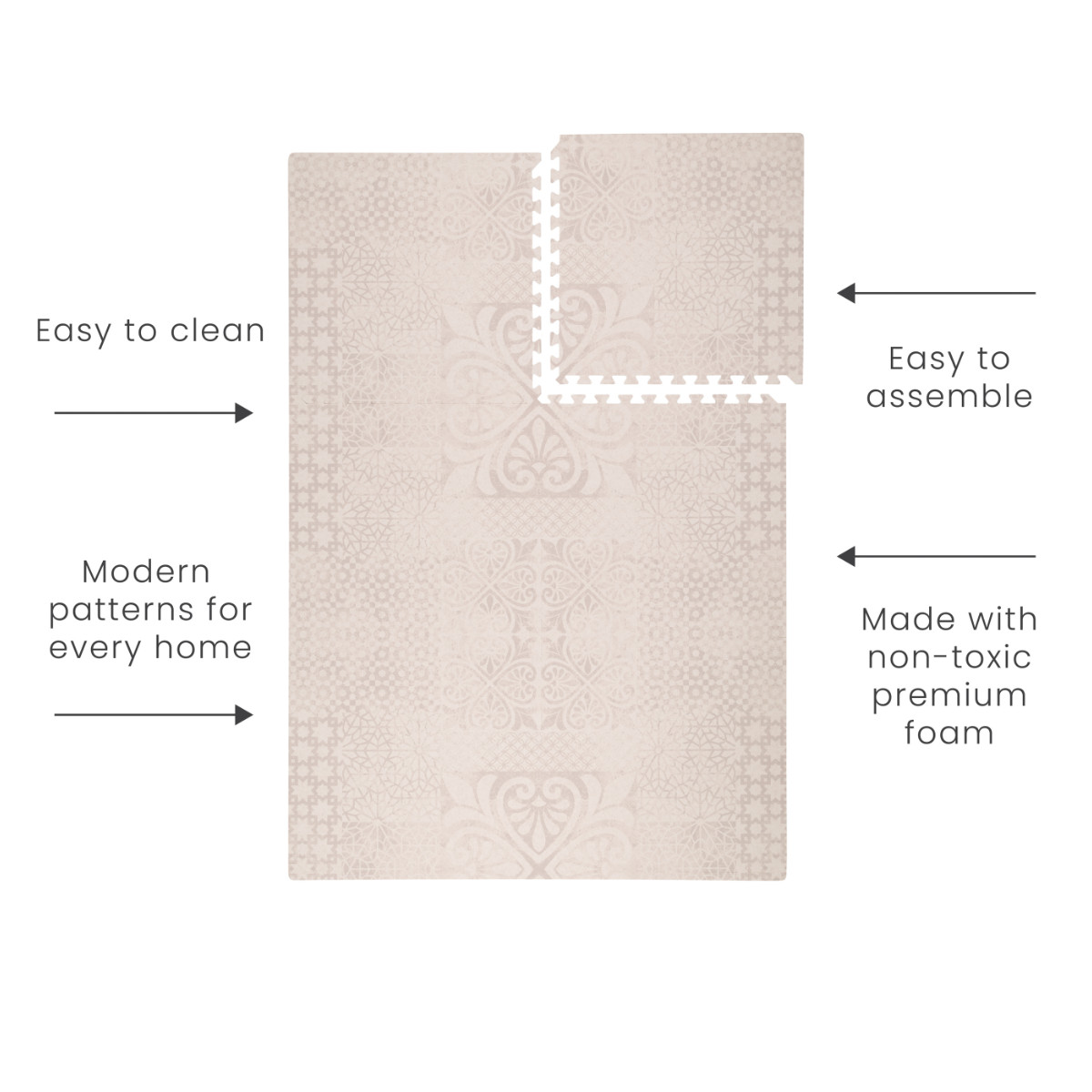- Play without delay - unlike fabric playmats, you don't have to do laundry every time your baby spits up. Just wipe and go