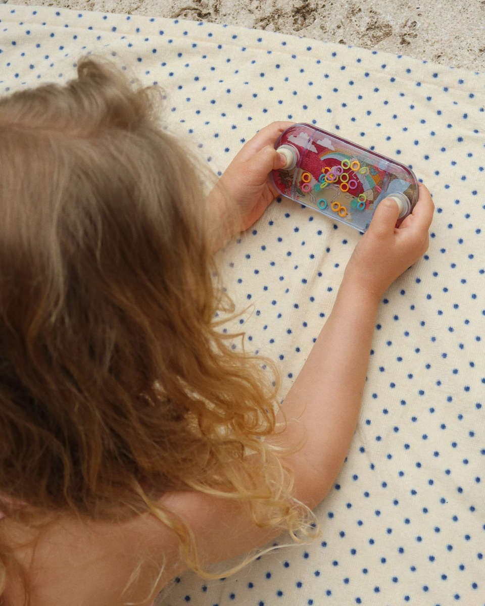 The Konges Sløjd Water Ring Game is a classic skill-based toy that encourages calm, focused play. By pressing the buttons, colourful rings float through the water and need to be placed onto the pegs.