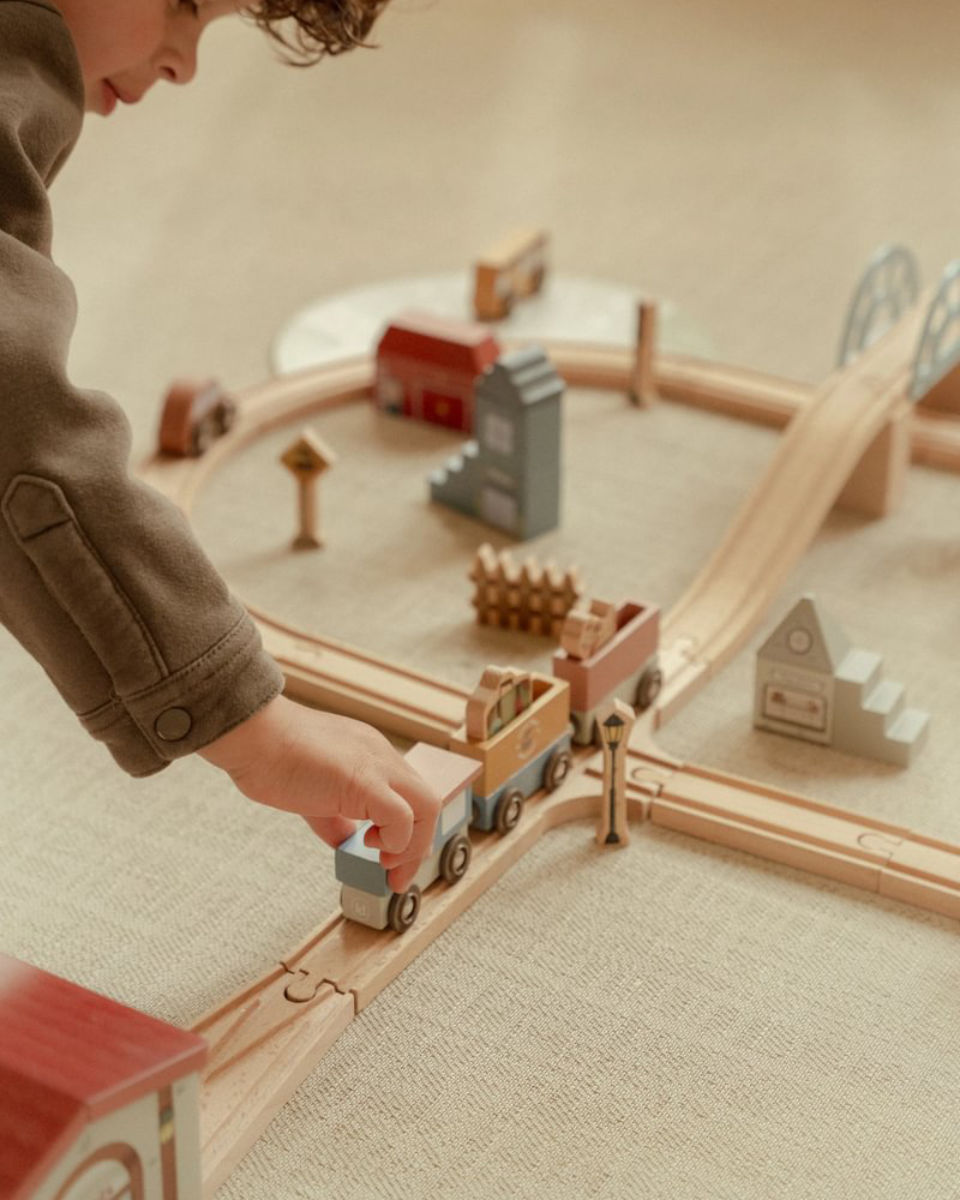 The Little Dutch Wooden Train XL inspires open-ended play, creativity, and discovery. Whether playing alone or with friends – every day brings a new adventure on your wooden railway!