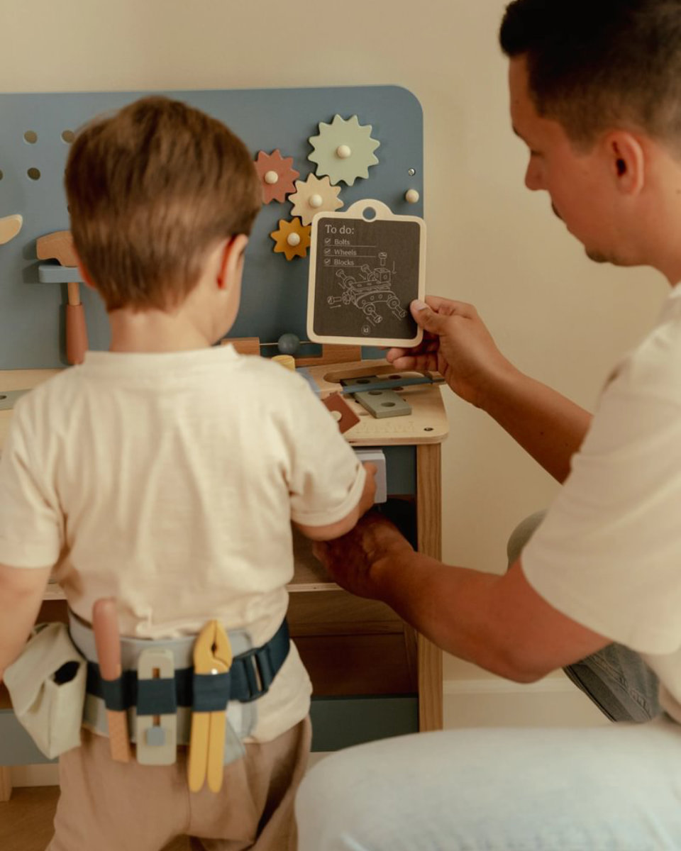 By gripping, sawing, measuring, and filing, your child playfully develops fine motor skills, hand-eye coordination, and concentration. Role play also strengthens imagination and self-confidence.