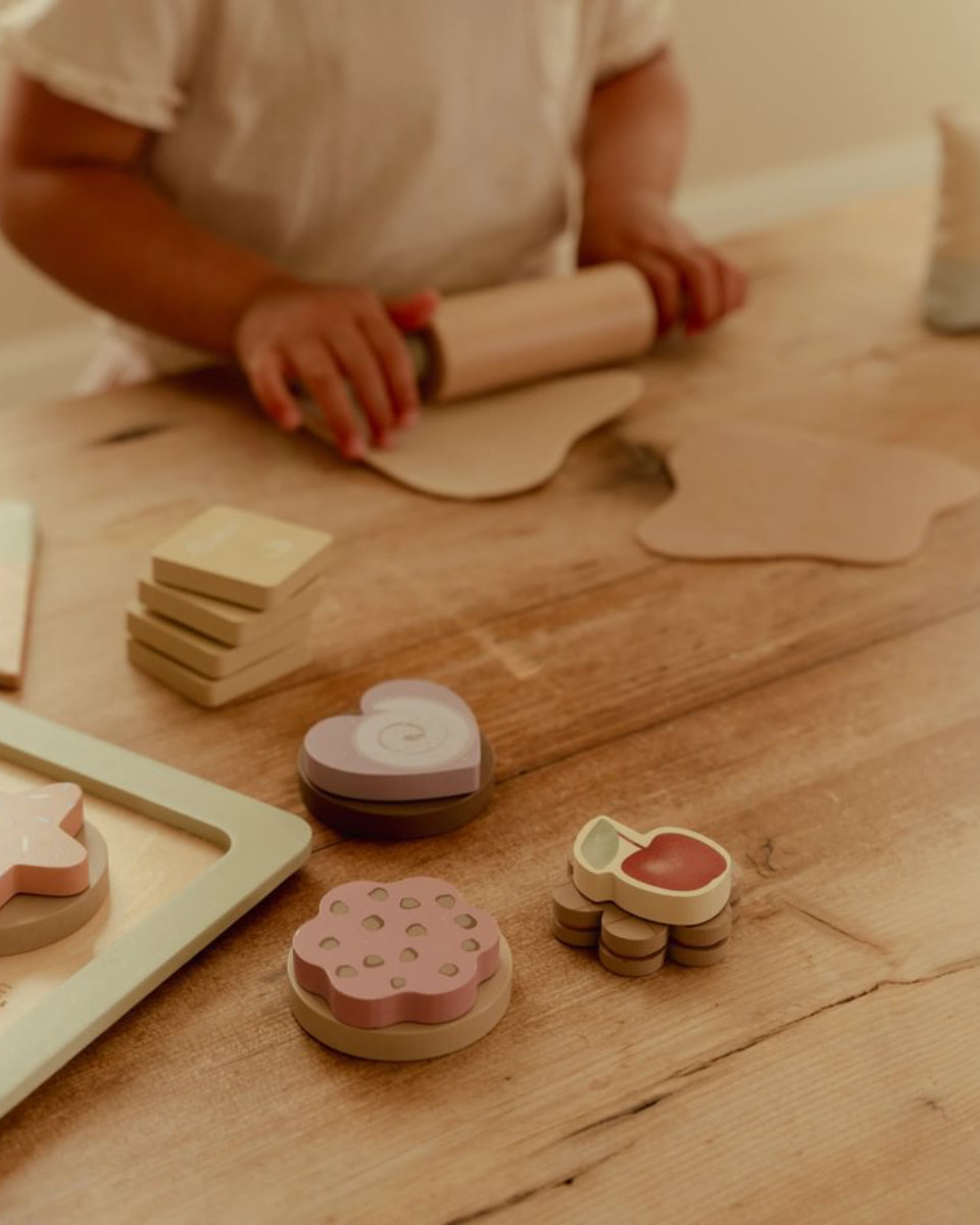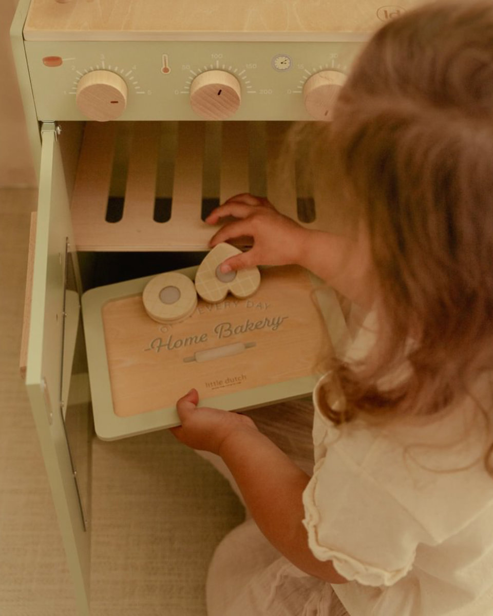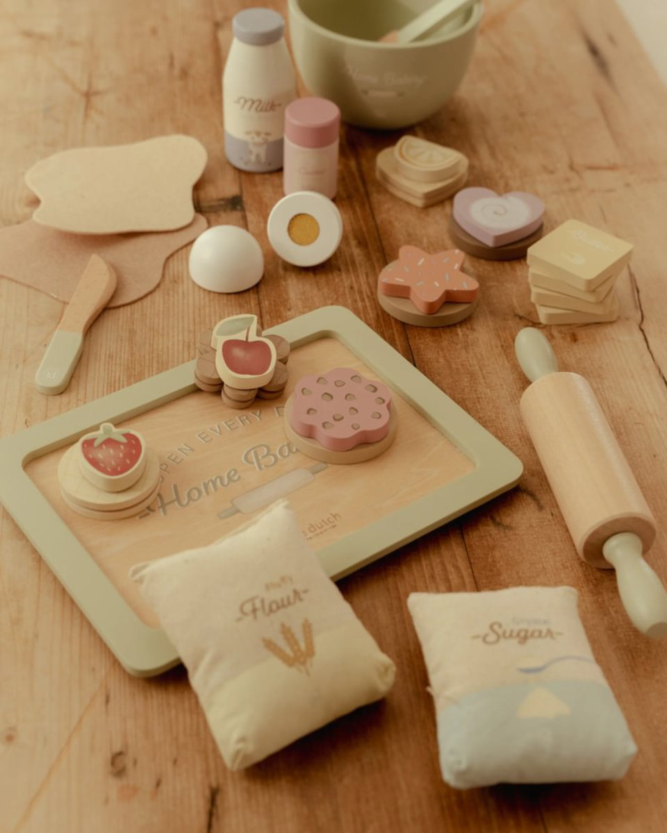 With the Little Dutch Baking Set, the play kitchen becomes a bakery. Children can knead, decorate, and serve – for creative play full of imagination and sustainable materials.