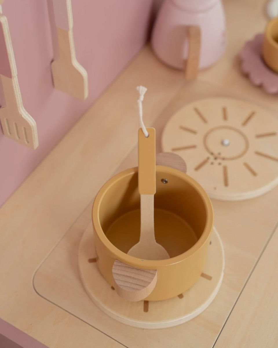 With the Little Dutch Wooden Play Kitchen in Pink, every day becomes an adventure. Cooking, baking, and serving – little chefs can unleash their creativity and enjoy unforgettable play moments.