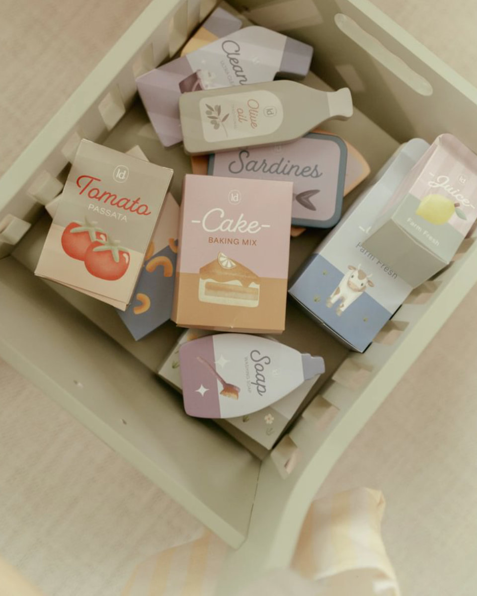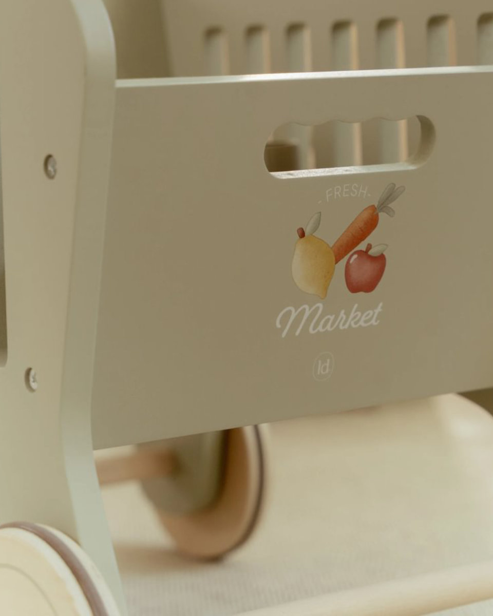 Made from FSC™-certified wood, the shopping cart convinces with a sturdy build and lovely details. The cheerful illustration on the front adds extra fun.