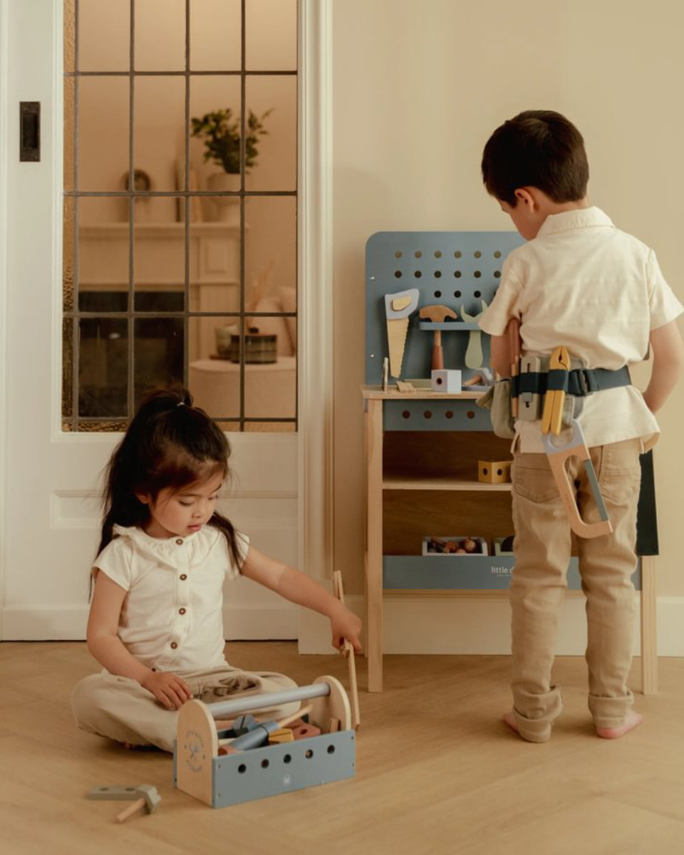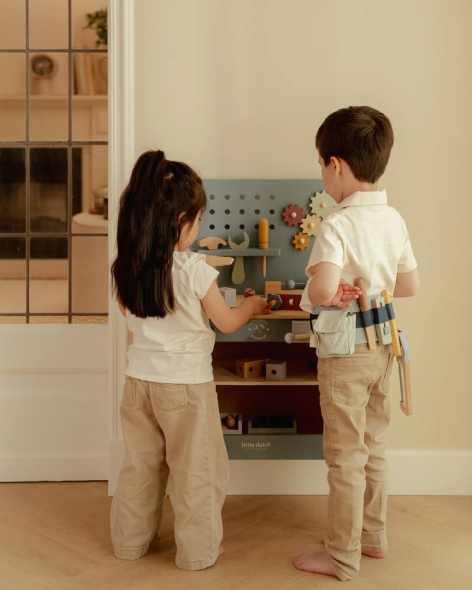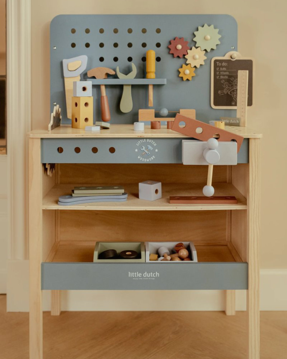 With the Little Dutch Workbench, your child enters the world of building. Creativity, dexterity, and fun are encouraged – with sustainable materials. A must-have for little builders!