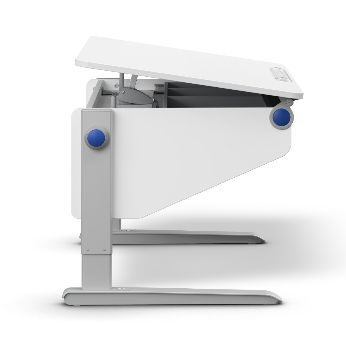 • Stufenlos schrägstellbare Tischplatte bis 18° zum Anheben – gebremste Absenkung einstellbar