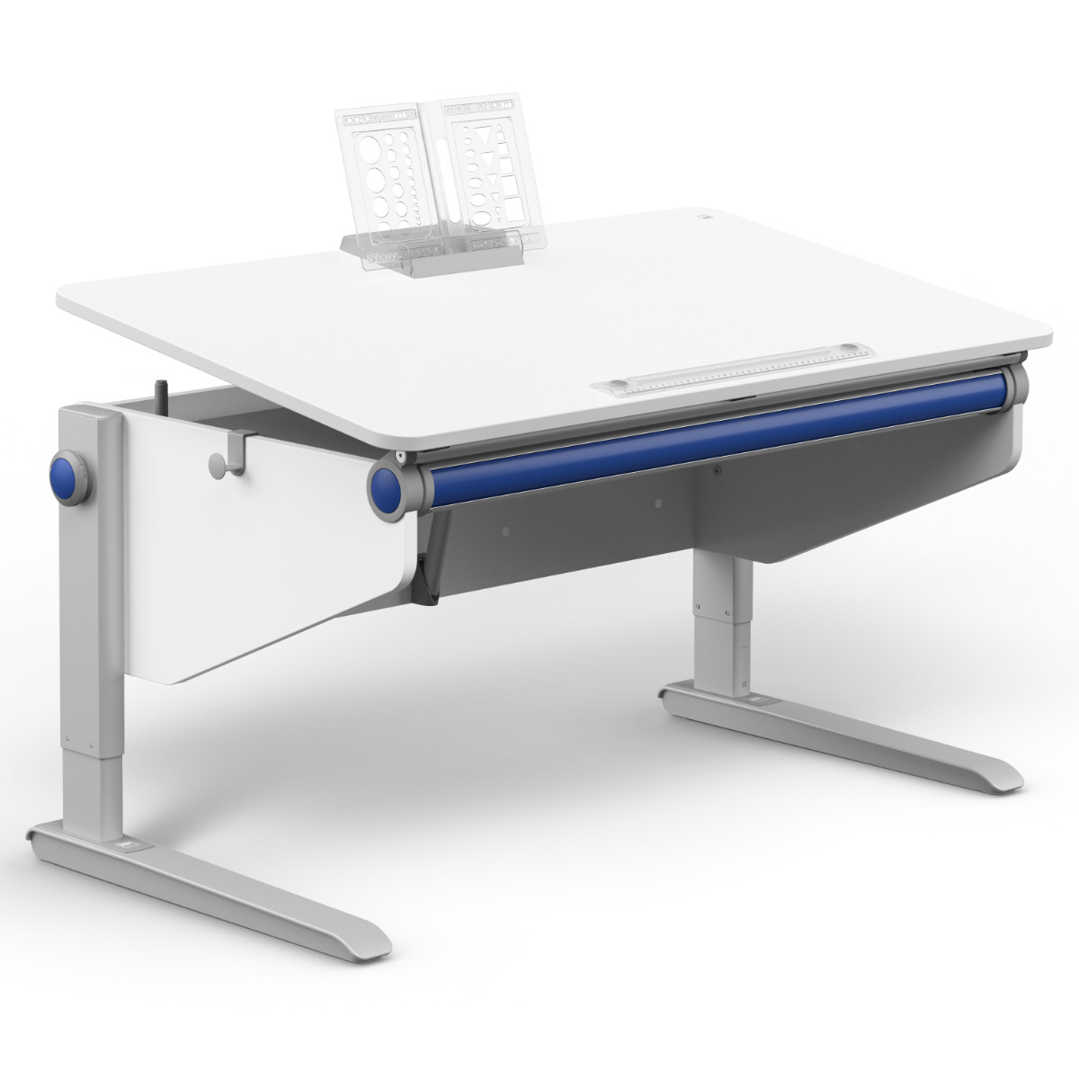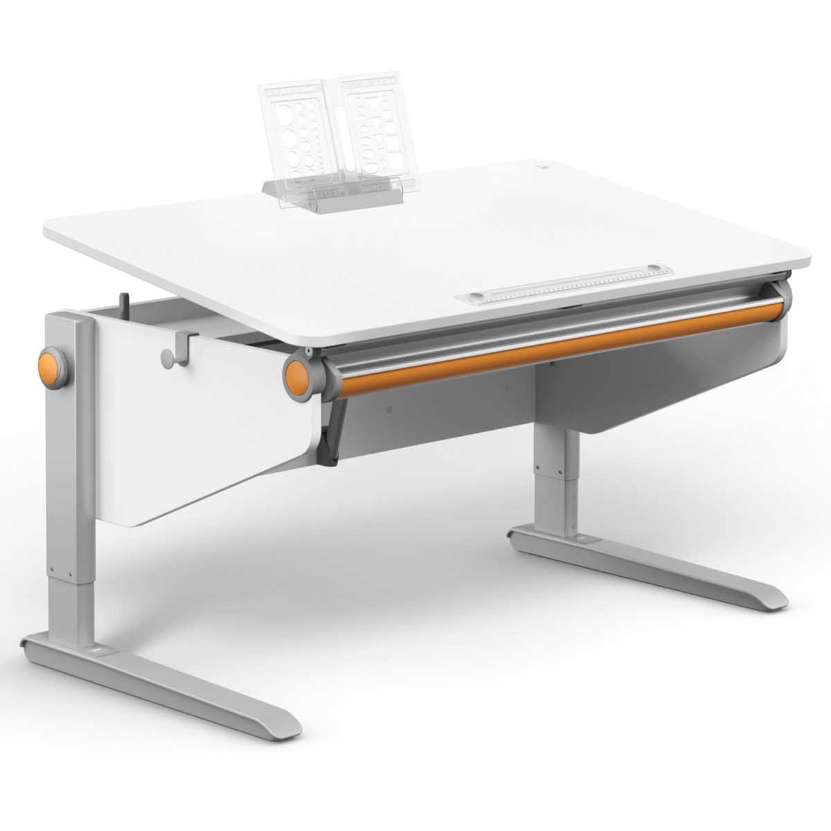 Außerdem kann das Jojo jederzeit abgenommen und separat verstaut werden. Neben der Buchstütze, dem Taschenhaken und der Abrutschsperre neu jetzt immer inklusive Orgaset. Die Seitenteile haben eine modernisierte Form und die Kunststoffelemente sind in neuem, hellem Grau. Die vorderen Ecken der Tischplatte haben nun ergonomisch gerundete Kanten und keine Softkante mehr.