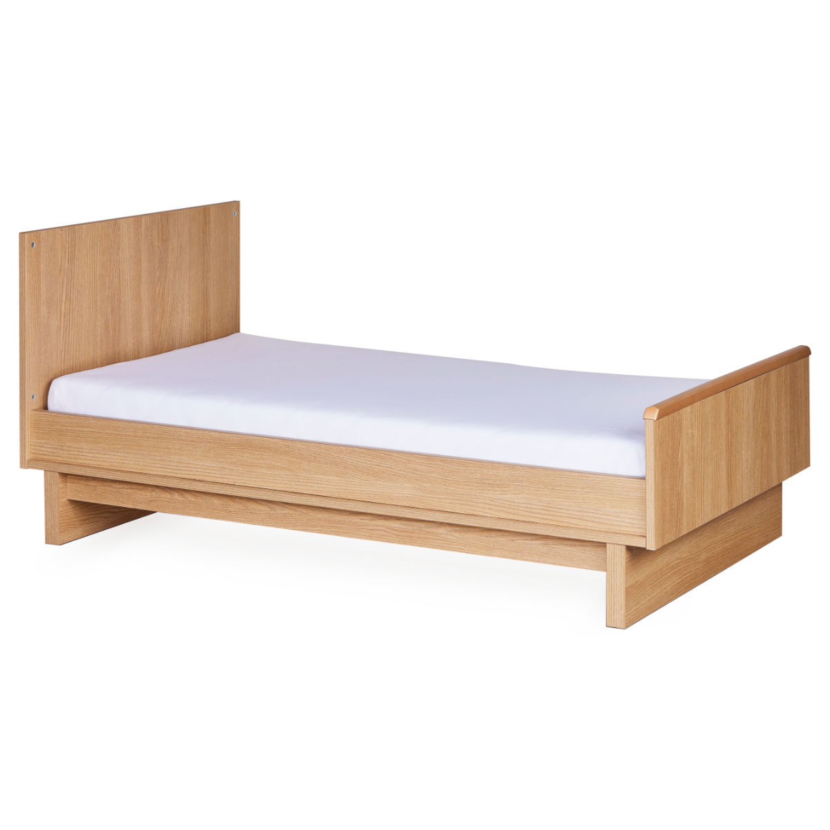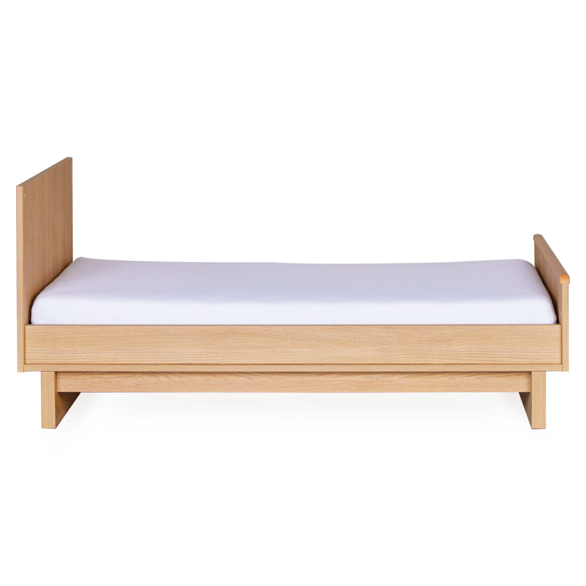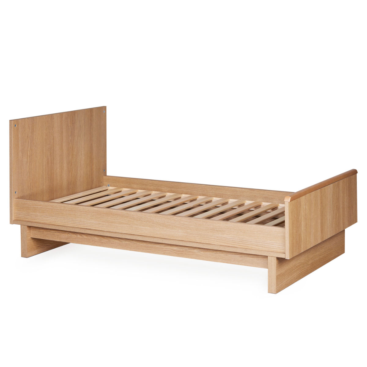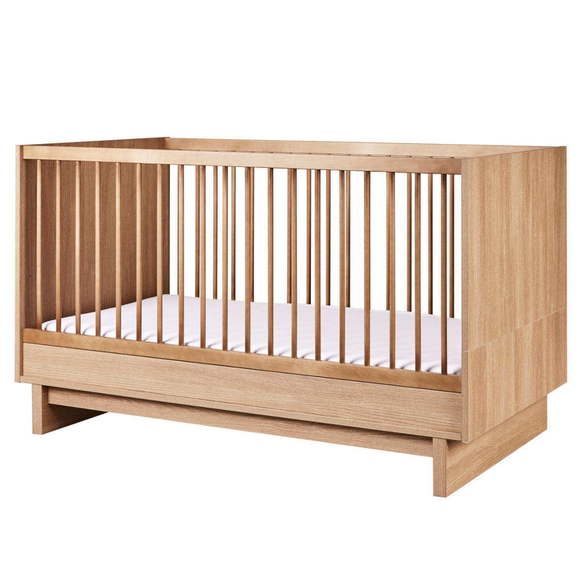 Das Kyo Bett ist in zwei Varianten erhältlich: mit einer Liegefläche von 120 × 70 cm oder 140 × 70 cm. Beide Modelle bieten drei höhenverstellbare Positionen für den Lattenrost – perfekt angepasst an jede Entwicklungsphase deines Babys. Die größere Ausführung (140 × 70 cm) bietet zusätzlich etwas mehr Platz und kann ohne Zusatzteile zu einem offenen Kleinkindbett umgebaut werden.