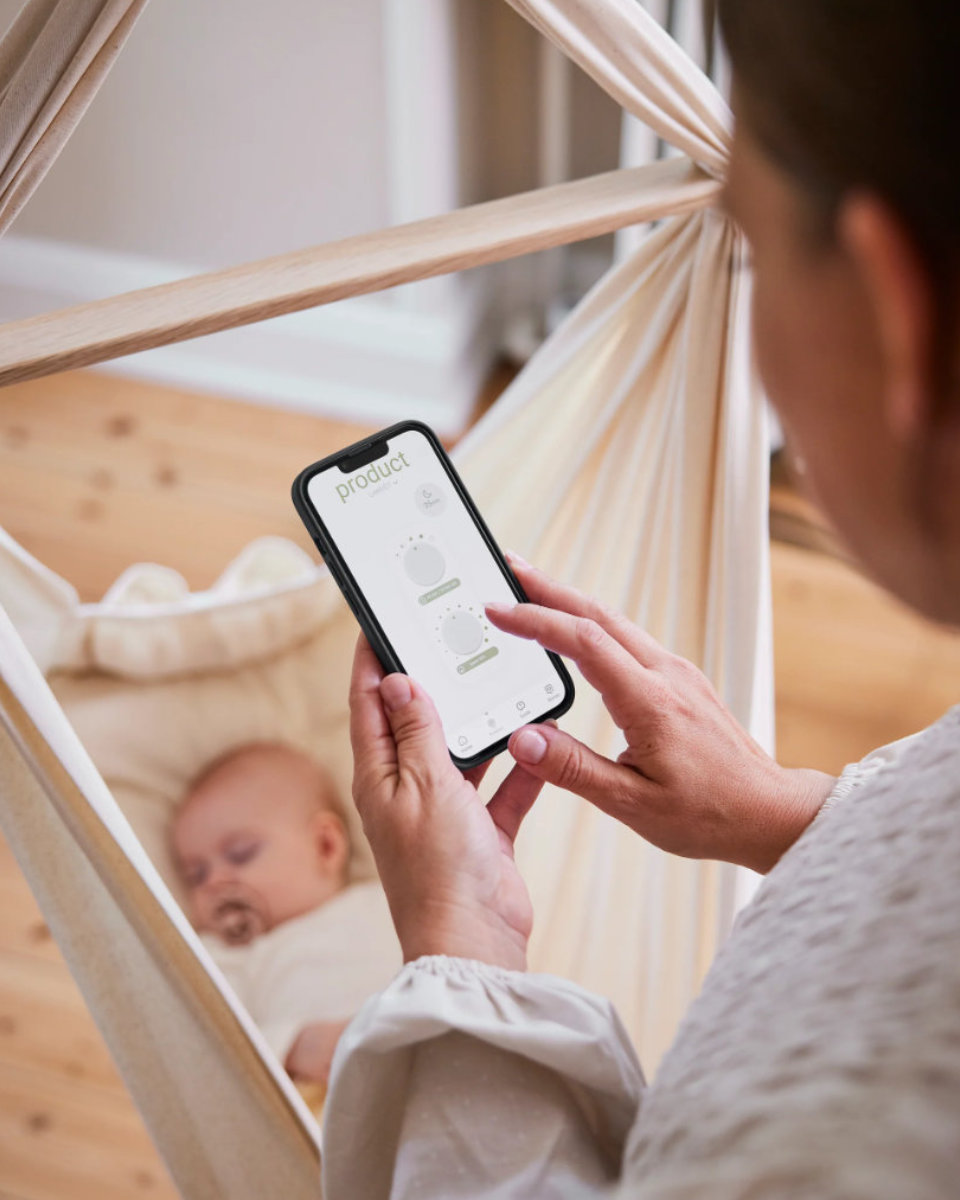 Das Herzstück des Sets ist der Federwiegenmotor LeeLo02. Er erzeugt eine gleichmäßige, beruhigende Schaukelbewegung, die dein Baby sanft in den Schlaf gleiten lässt. Das Besondere: Der Motor ist app-gesteuert. Du kannst die Intensität und Dauer der Bewegung bequem vom Sofa aus über dein Smartphone anpassen. Ein integriertes Schlaftracking gibt dir zudem wertvolle Einblicke in die Ruhephasen deines Kindes.