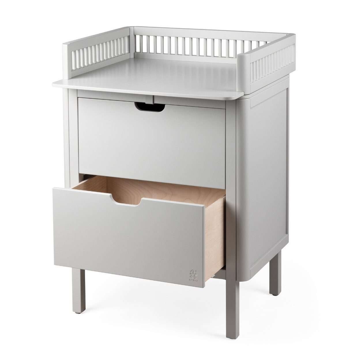 Die Sebra Wickelkommode verfügt über einen skandinavischen und zeitlosen Look, der perfekt mit den restlichen Möbeln aus der klassischen Sebra Möbelkollektion harmoniert, die aus dem Sebra Schreibtisch, dem Sebra Kleiderschrank sowie dem ikonischen Baby und Juniorausziehbett, dem Sebra Bett, Baby & Jr. und dessen Nachfolger, dem Sebra Bett, Junior & Grow, besteht.