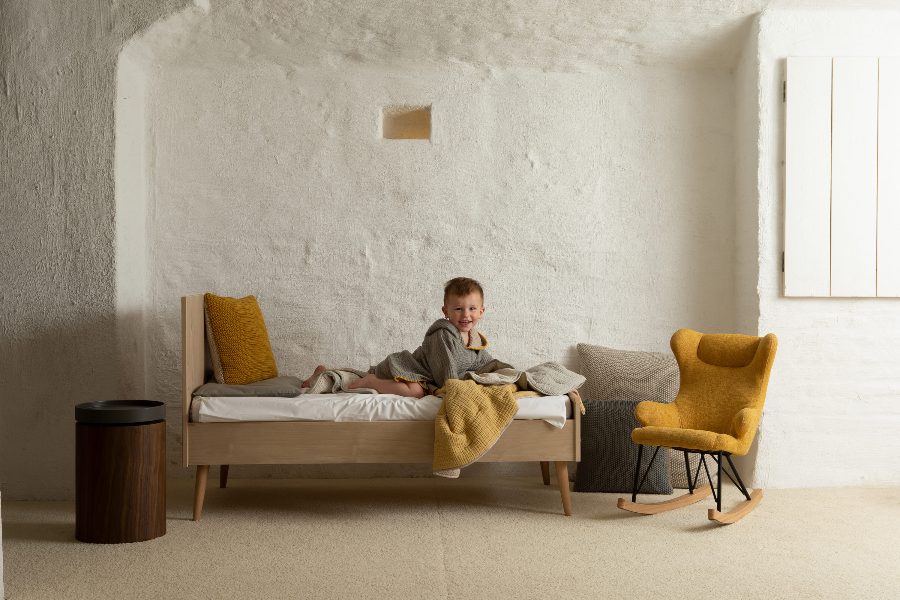 Der Rocking Chair De Luxe - Kids ist im gleichen Stil wie das identische Modell Quax Rocking Schaukelstuhl Erwachsene Deluxe für Mama und Papa erhältlich und ermöglicht es dir, einen schönen und harmonischen Look im Kinder-, Spiel- oder Wohnzimmer zu schaffen.