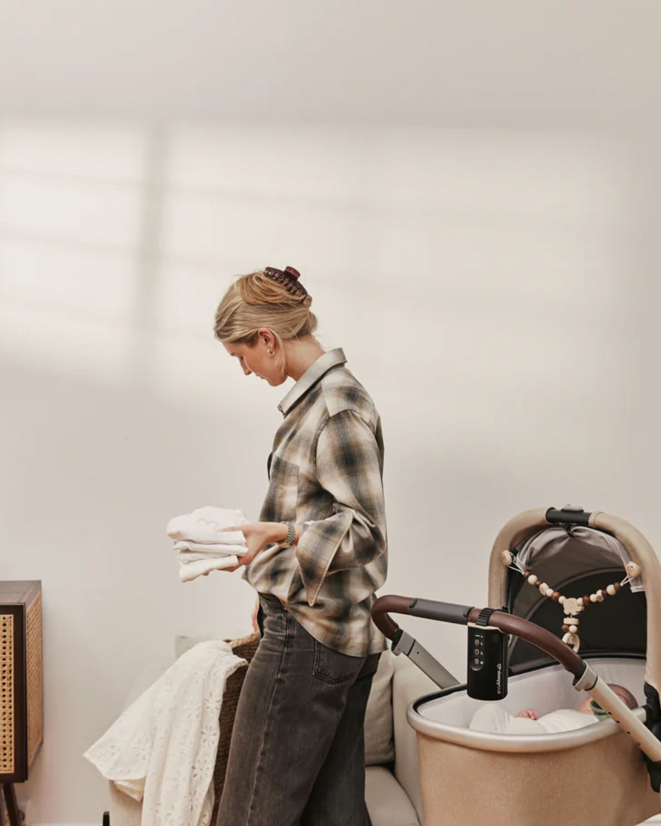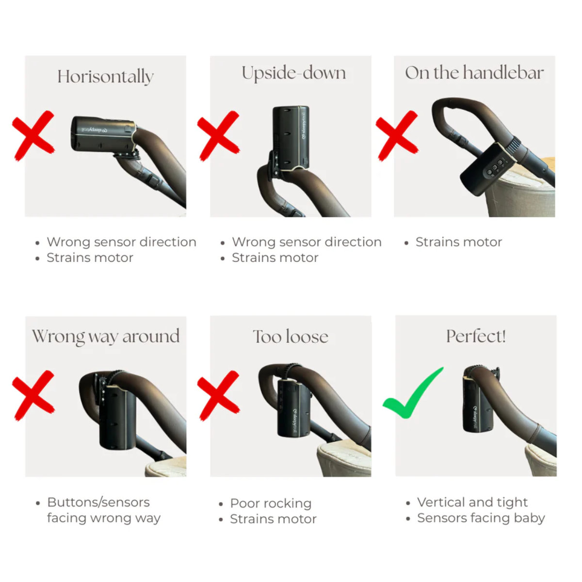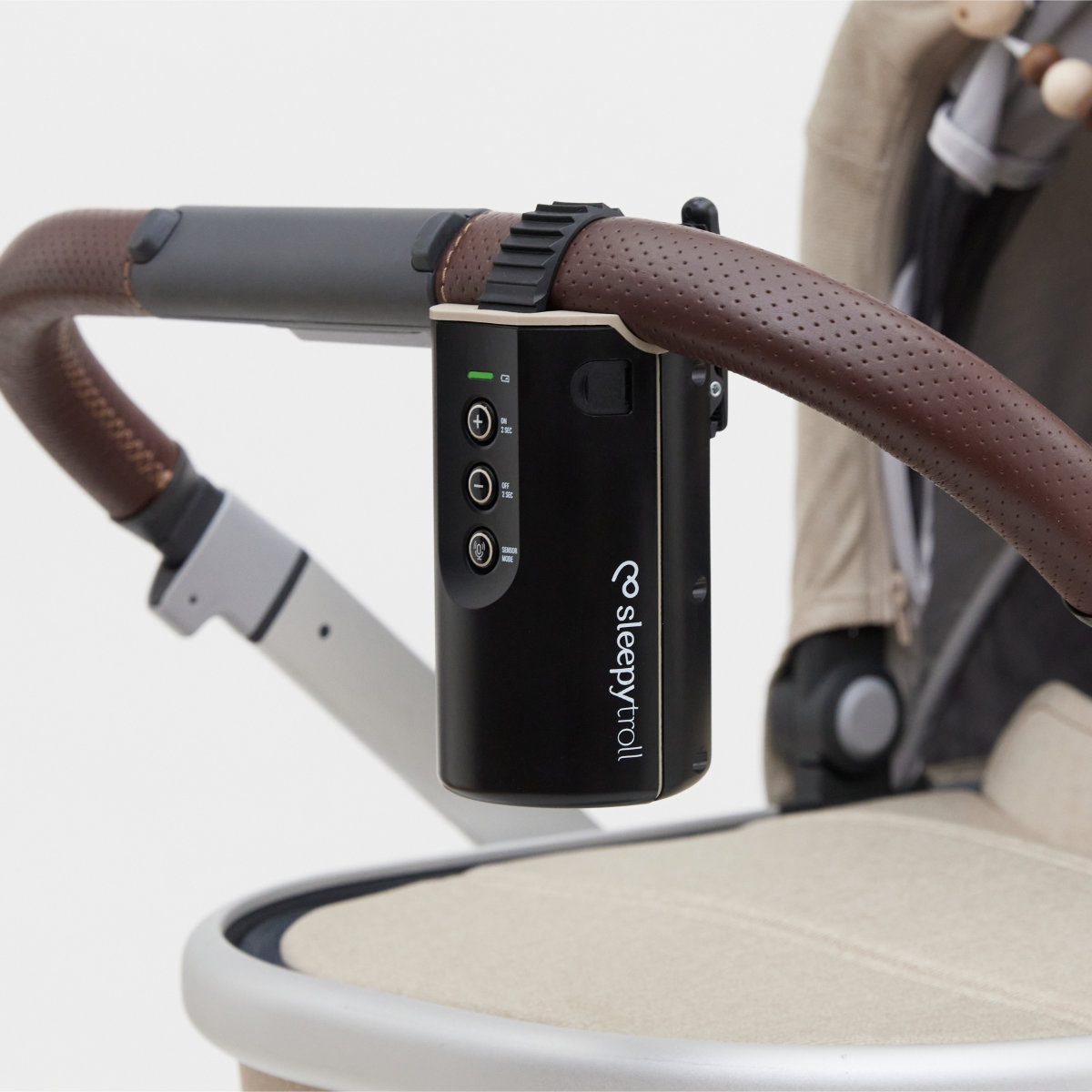 Der Sleepytroll lässt sich mühelos am Kinderwagen befestigen und funktioniert mit separat erhältlichen Adaptern auch am Babybett oder an der Babywippe. So genießt dein Baby überall dieselbe beruhigende Bewegung – ob zu Hause, unterwegs oder auf Reisen.
