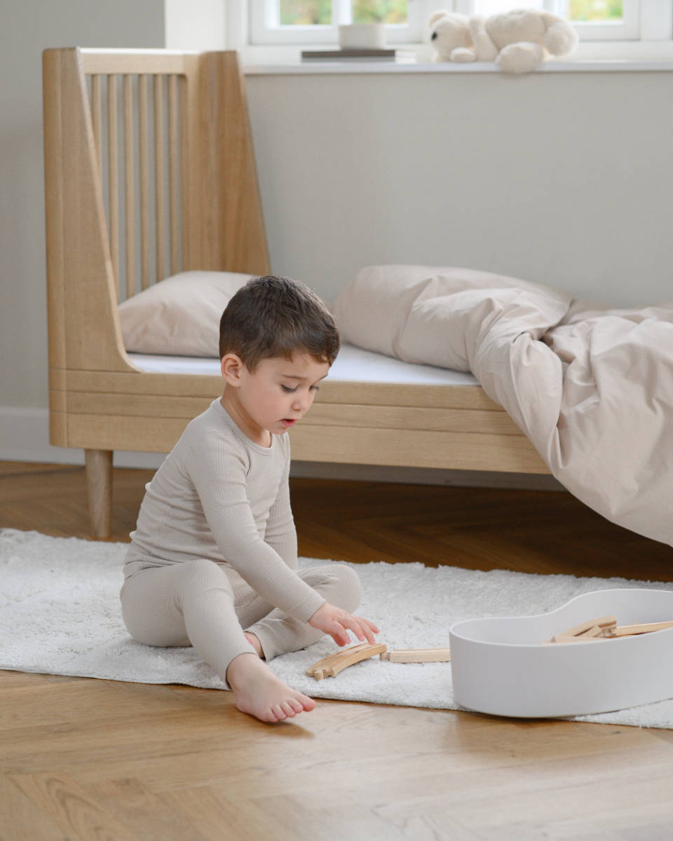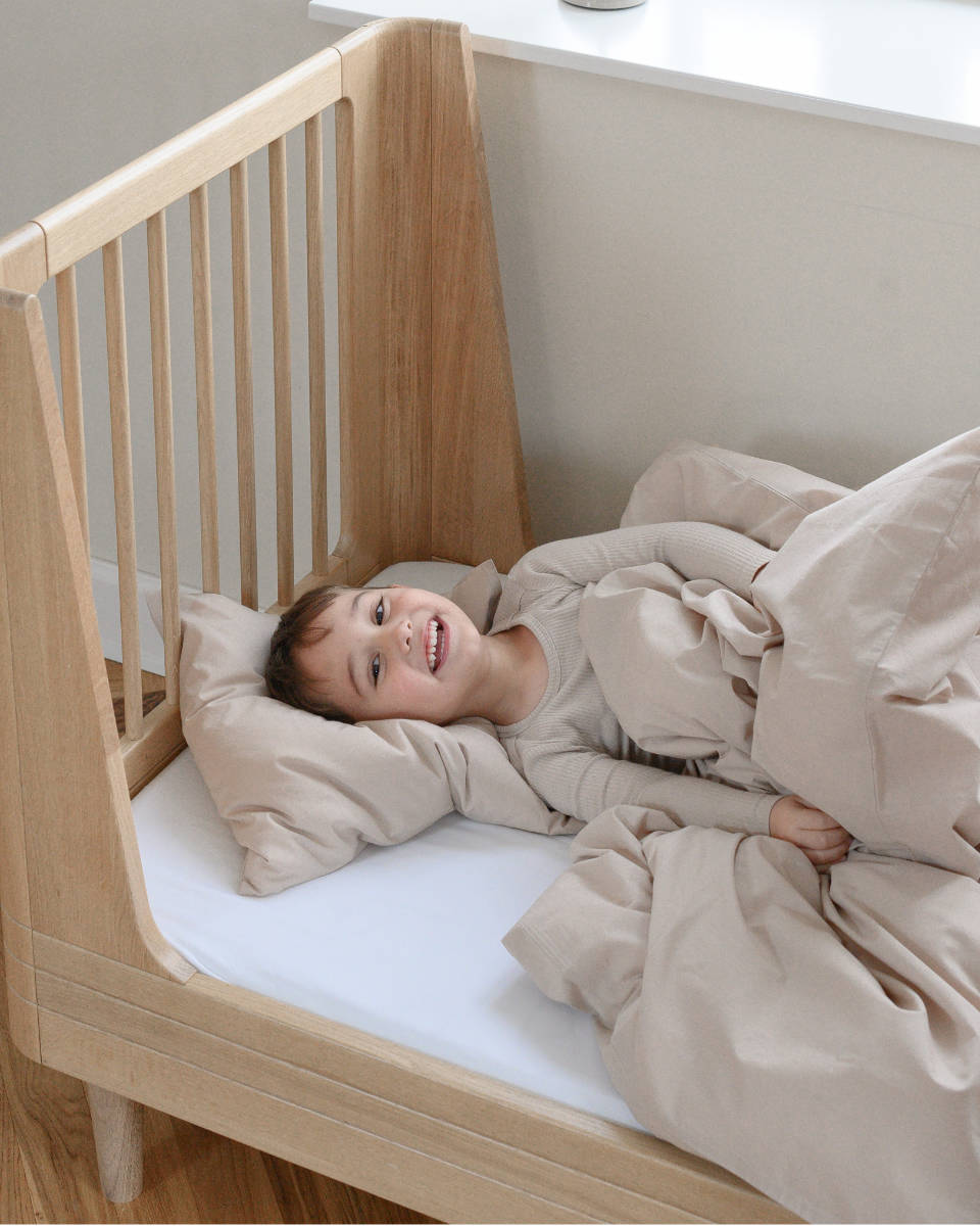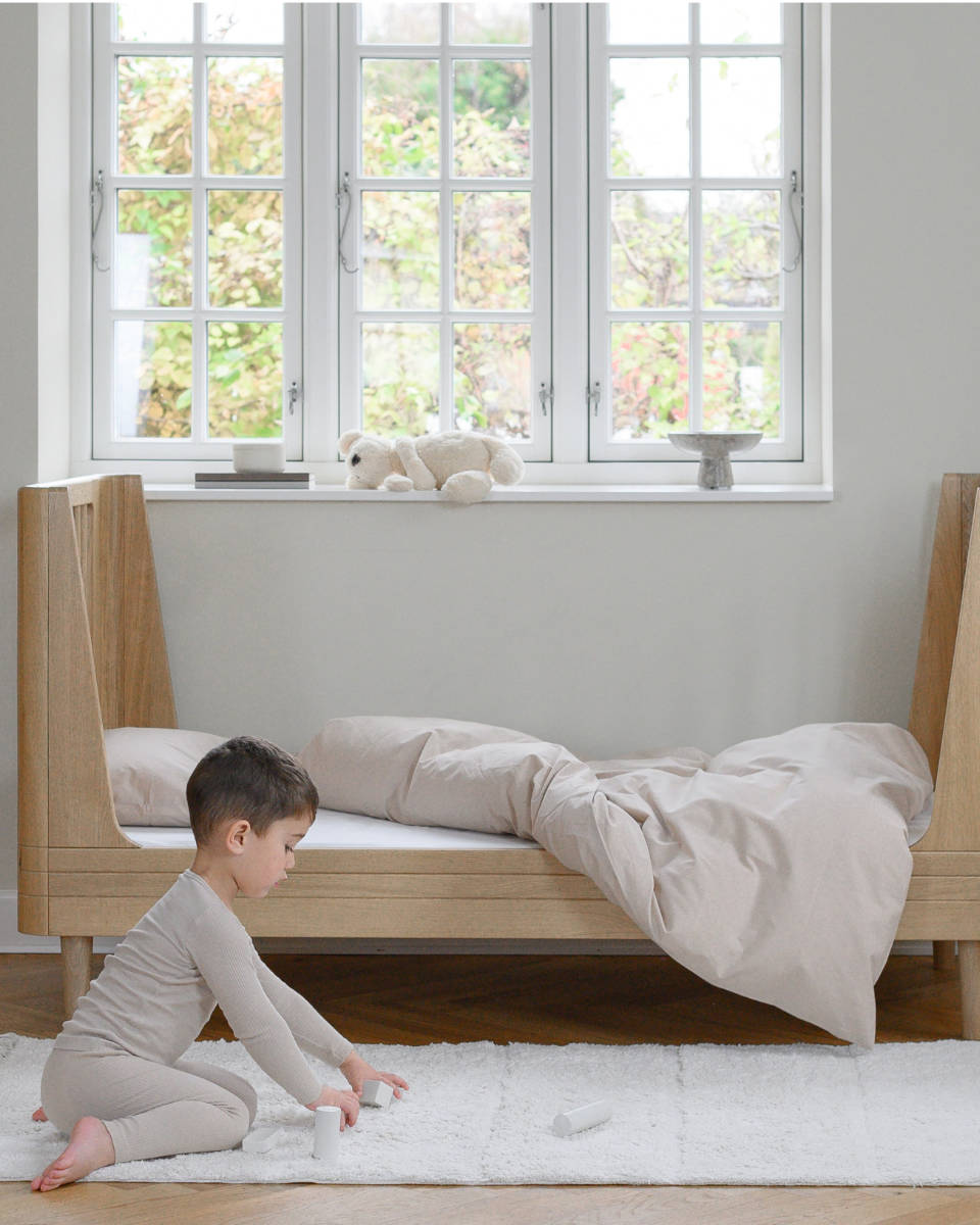 Mit dem Umbau-Set von We Are Bitte verwandelst du dein Babybett im Handumdrehen in ein hochwertiges Juniorbett. Für mehr Nachhaltigkeit, weniger Aufwand und ein schönes Zuhause.