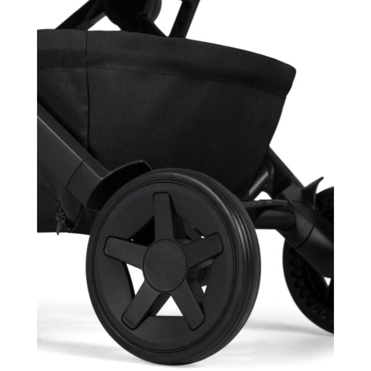 Die Räder wurden komplett überarbeitet. Neue Vorderräder und eine verbesserte Allrad-Federung sorgen dafür, dass du den Buggy mühelos über Kopfsteinpflaster, Parkwege oder Flughafen-Terminals schieben kannst. Der hohe Schiebegriff bietet dabei genügend Beinfreiheit für große Eltern, sodass entspanntes Gehen garantiert ist.