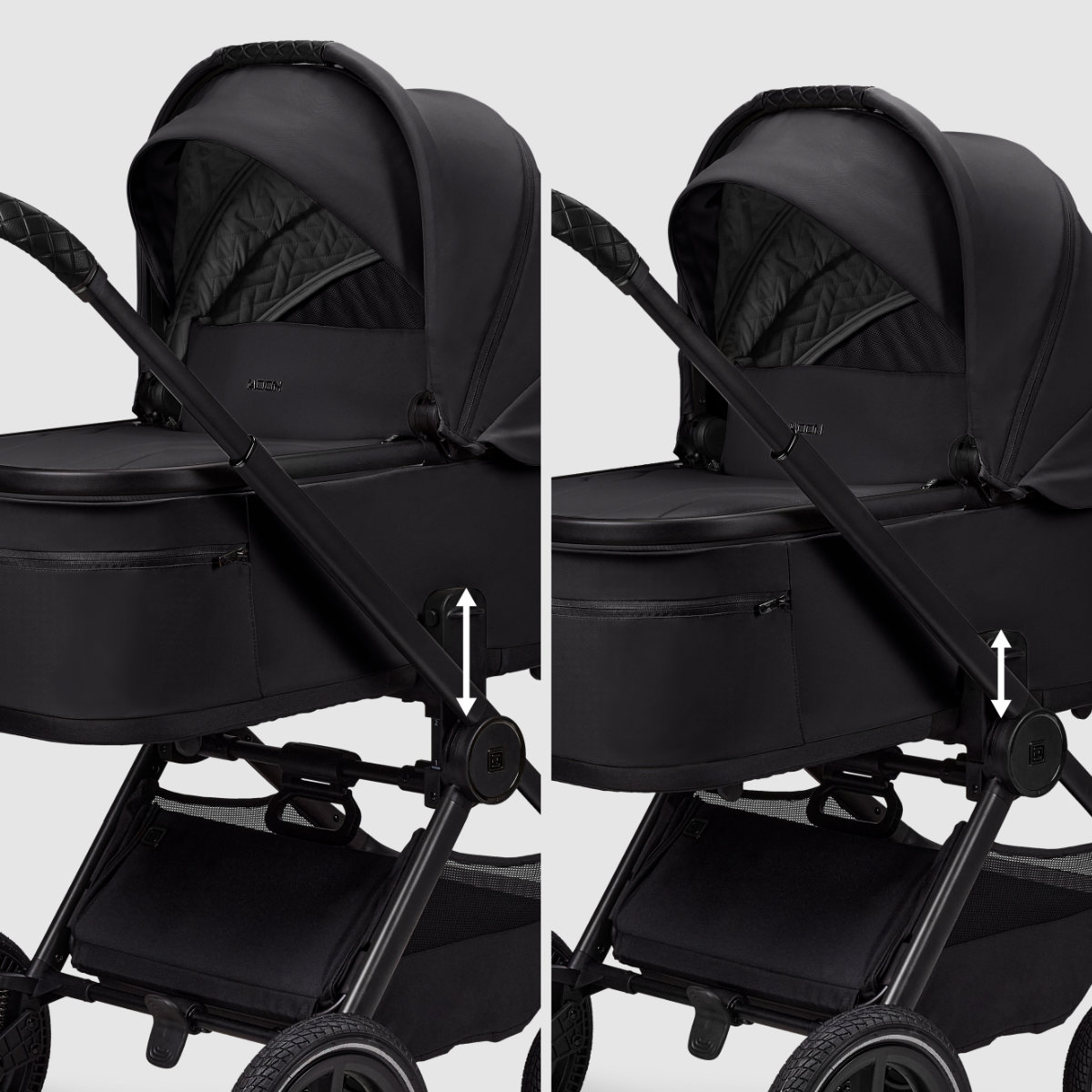 Sowohl Babywanne als auch Sportsitz lassen sich ohne zusätzliche Adapter in zwei Höhen einstellen – ergonomisch für dich und komfortabel für dein Kind.