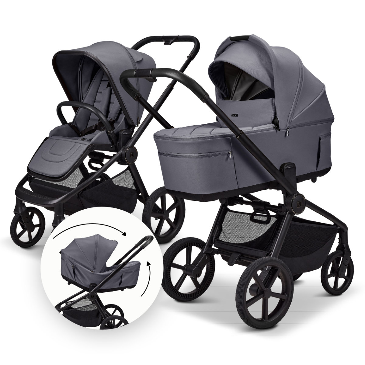 Der neue, hochwertige Stoff in eleganter Optik, die edle Steppung der Babywanne und exklusive Farbkombinationen verleihen dem Kinderwagen eine hochwertige Ausstrahlung. Das moderne Innendesign in Light Gray sorgt zusätzlich für ein ruhiges, stilvolles Gesamtbild.
