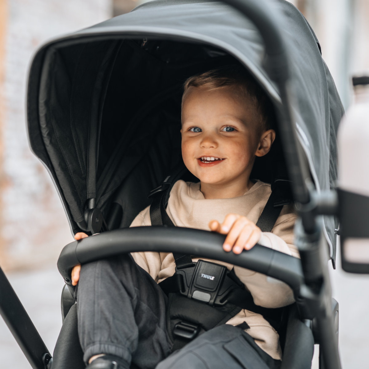 Sobald dein Kind größer wird, wechselst du unkompliziert auf den ergonomischen Sportsitz. Dieser lässt sich sowohl in als auch gegen die Fahrtrichtung montieren und bietet mehrere Sitz- und Ruhepositionen. Dank des modularen Aufbaus bleibt der Thule Sleek 2 dauerhaft flexibel und kann bei Bedarf sogar zum Geschwisterwagen erweitert werden – ohne sperrig oder schwerfällig zu wirken.