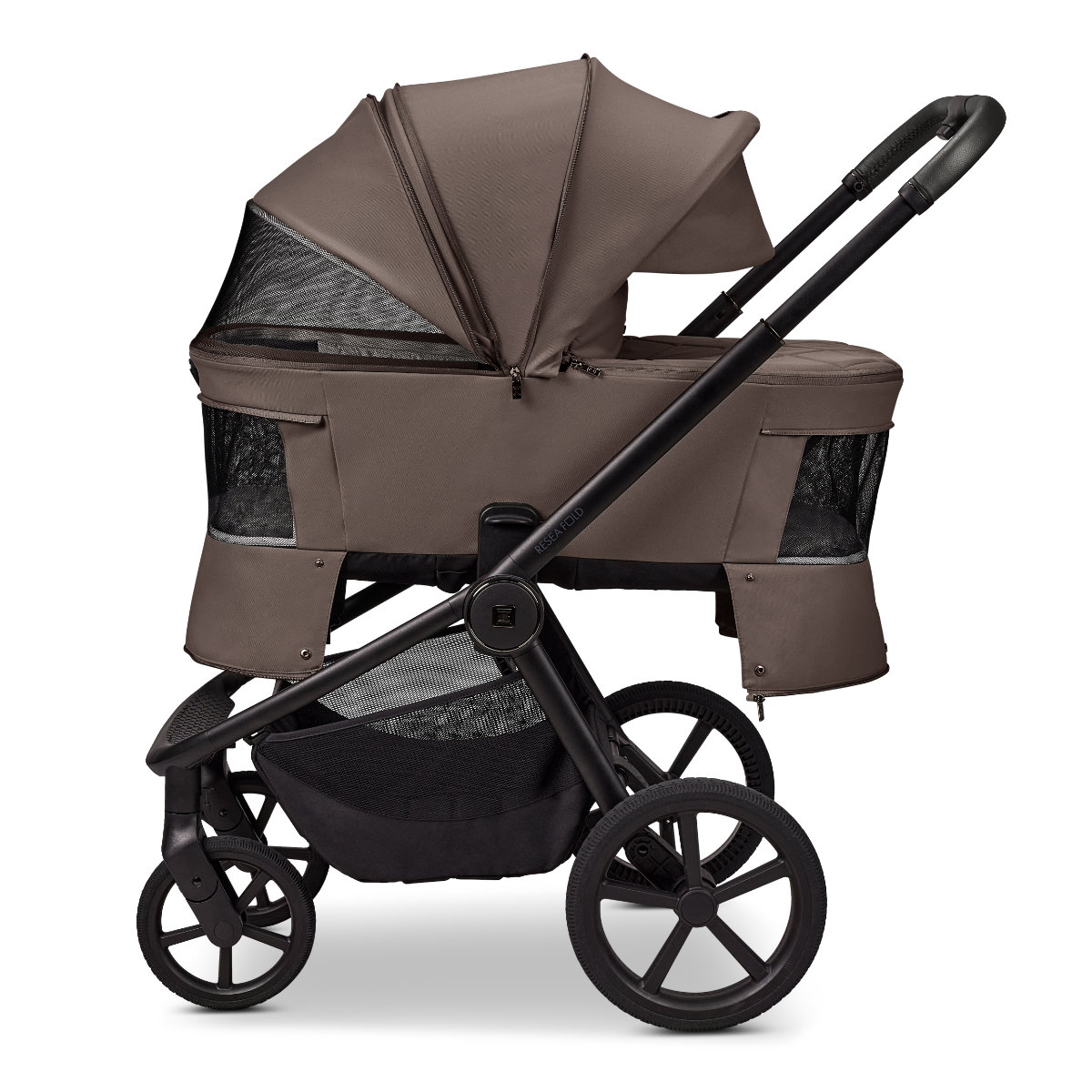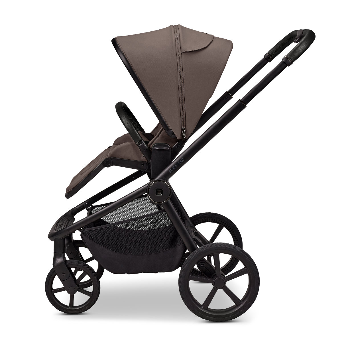 Der neue, hochwertige Stoff in eleganter Optik, die edle Steppung der Babywanne und exklusive Farbkombinationen verleihen dem Kinderwagen eine hochwertige Ausstrahlung. Das moderne Innendesign in Light Gray sorgt zusätzlich für ein ruhiges, stilvolles Gesamtbild.