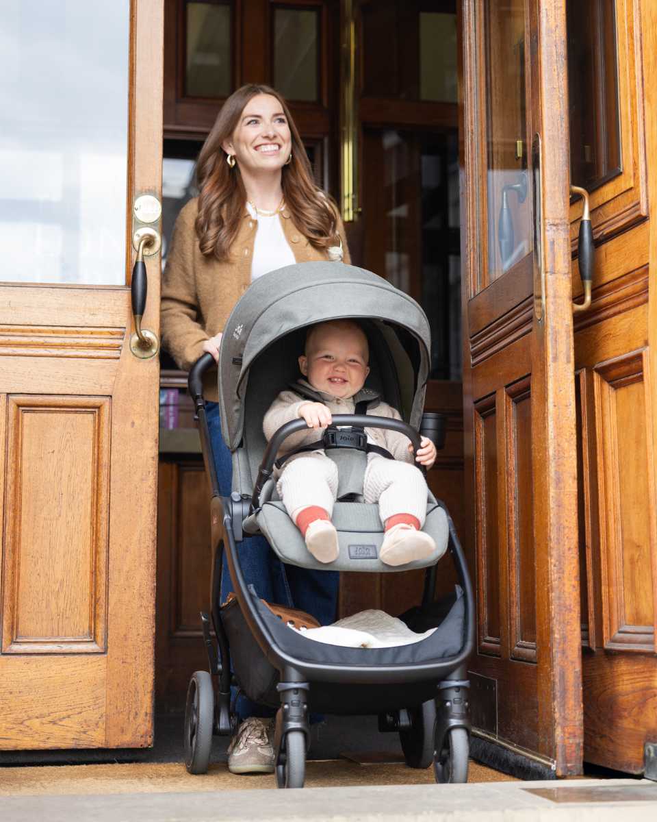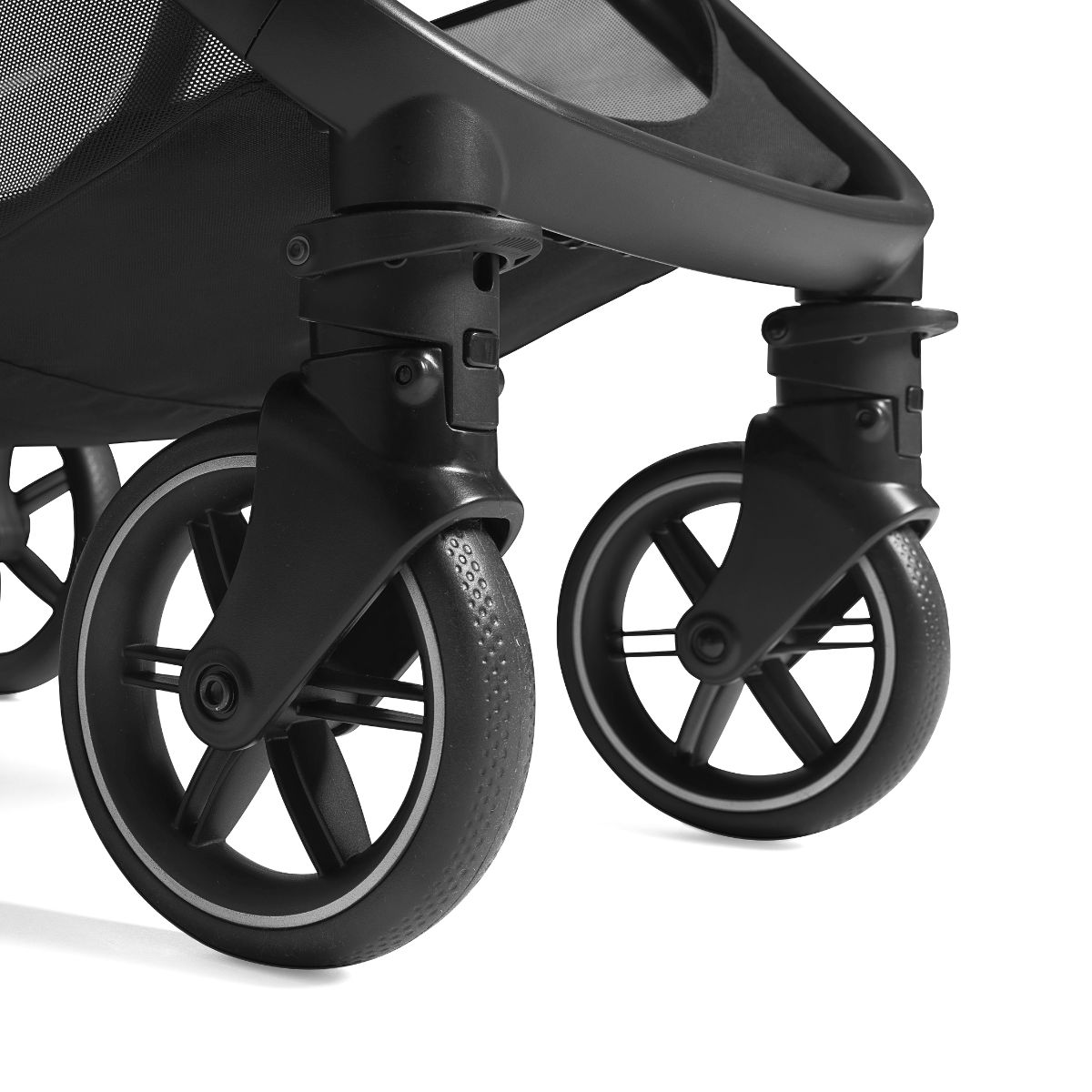 Dein Kind rollt dank der komfortablen Allradfederung und pannensicheren EVA-Räder sanft über jedes Pflaster. Das erweiterbare, wasserabweisende Verdeck mit UV-Schutz 50+ schirmt Sonne und Regen sicher ab. Aber auch an dich wurde gedacht: Der Teleskop-Schiebebugel in edler Lederoptik ist 4-fach höhenverstellbar. Deine Einkäufe finden im XXL-Staukorb locker Platz, und der Coffee-to-go ist im seitlichen Getränkehalter immer griffbereit.