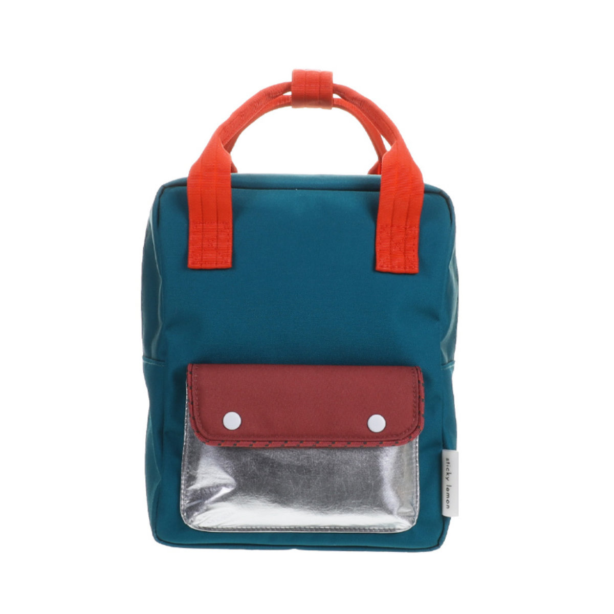 Der Sticky Lemon Rucksack für Kinder zeichnet sich durch sein farbenfrohes Design und seine praktischen Details aus. Auf der Vorderseite findest du eine zusätzliche Tasche. Der Sticky Lemon Kinderruck ist mit wasserdichtem Innenfutter gefertigt und mit einem stabilen YKK- Reißverschluss ausgestattet. Auf der Innenseite findest du einen elastischen Flaschenhalter und eine Tasche auf der gesamten Rückseite, die sich mit einem Klettverschluss verschließen lässt. Auf dem Namenschild kannst du Namen und Kontaktdaten notieren.