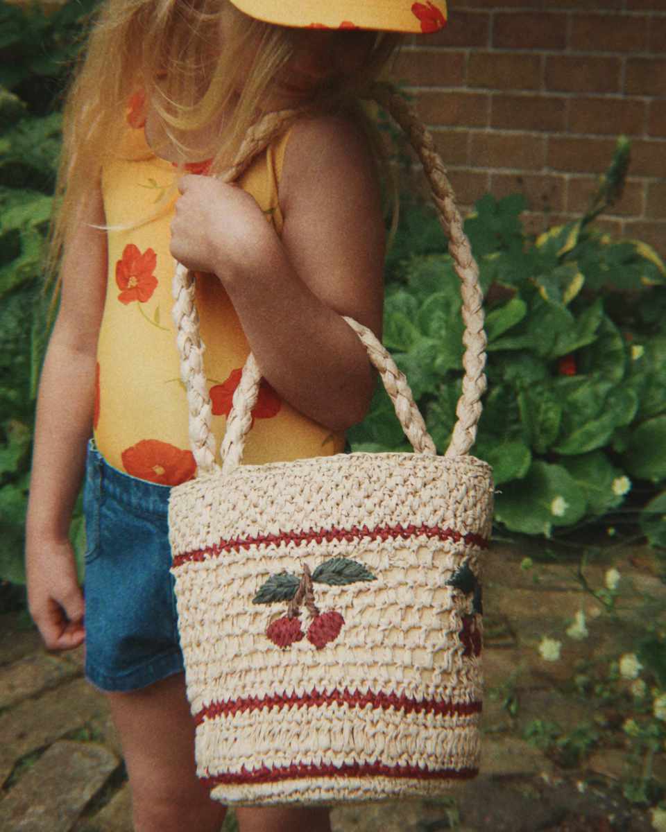 Gefertigt aus 100% Raffia überzeugt die Tasche durch ihr leichtes Gewicht und ihre natürliche Optik. Ideal für Kinder, die ihre eigenen kleinen Schätze transportieren möchten.