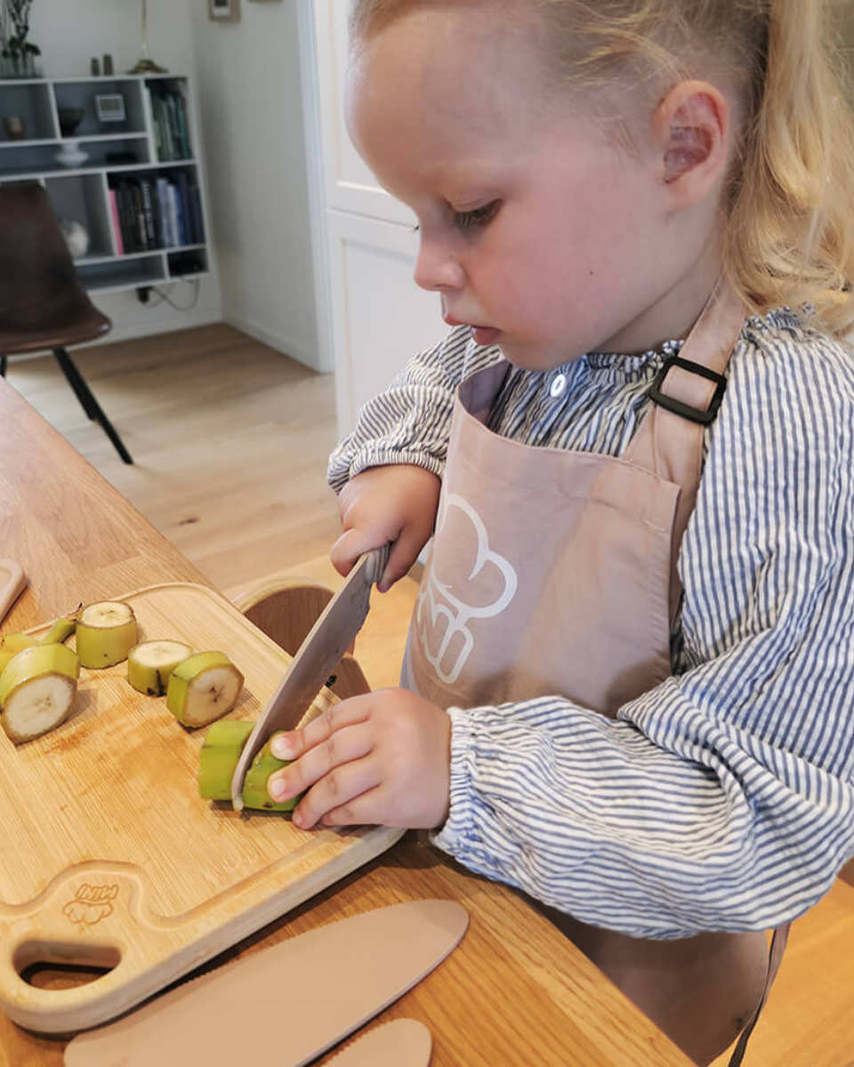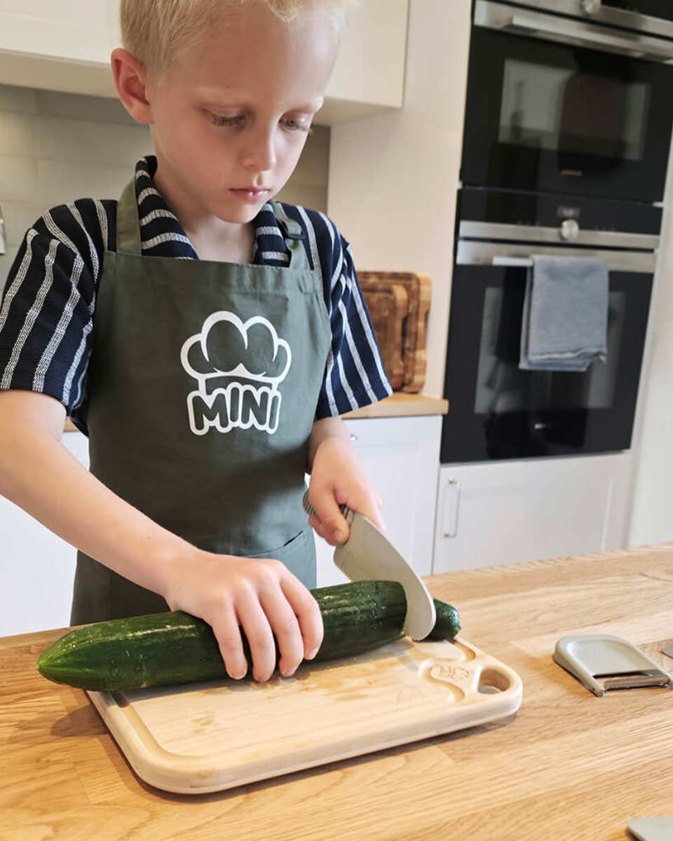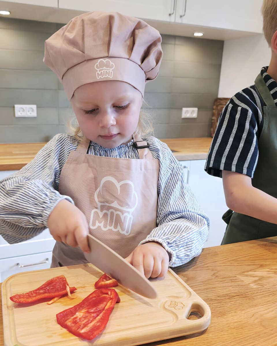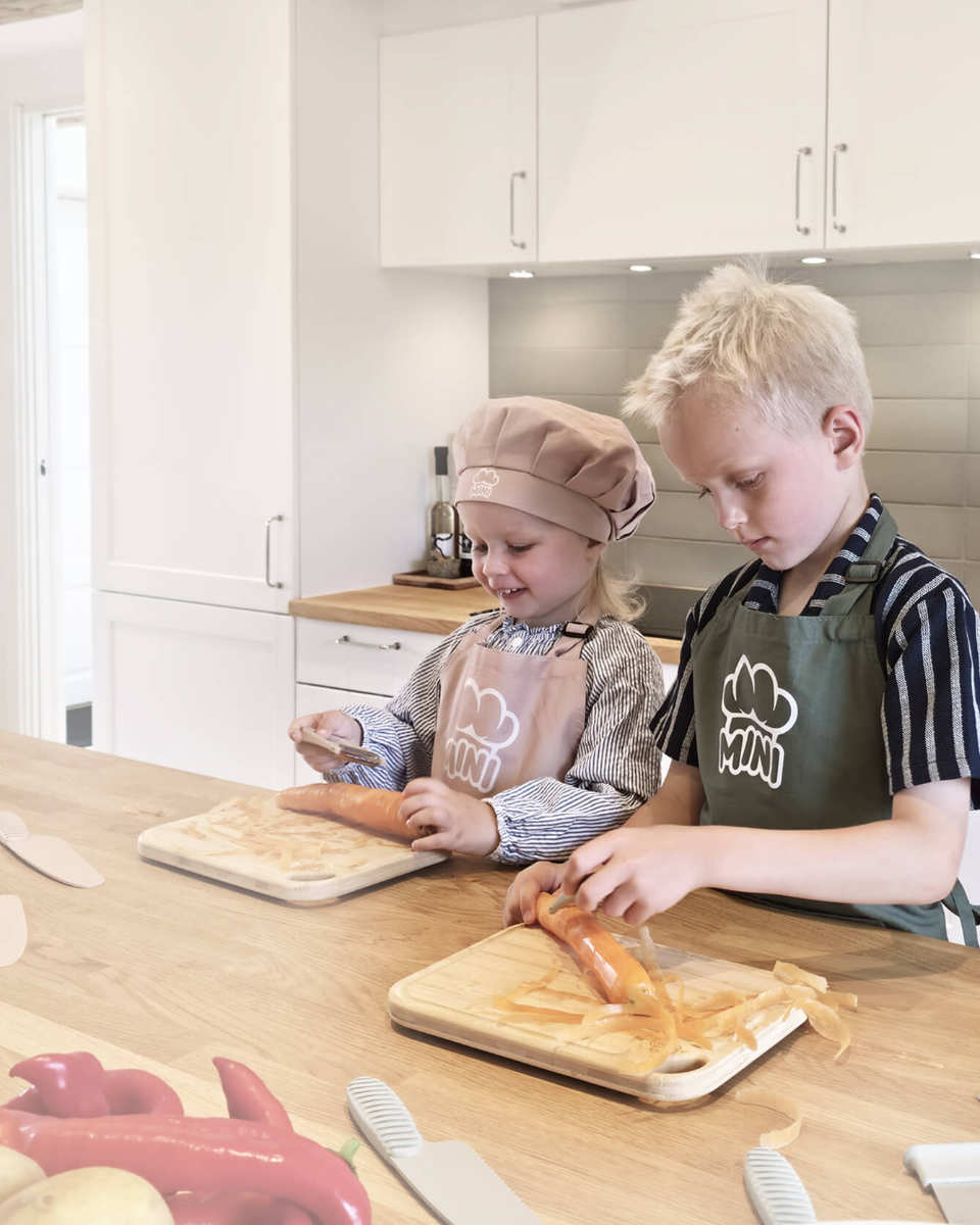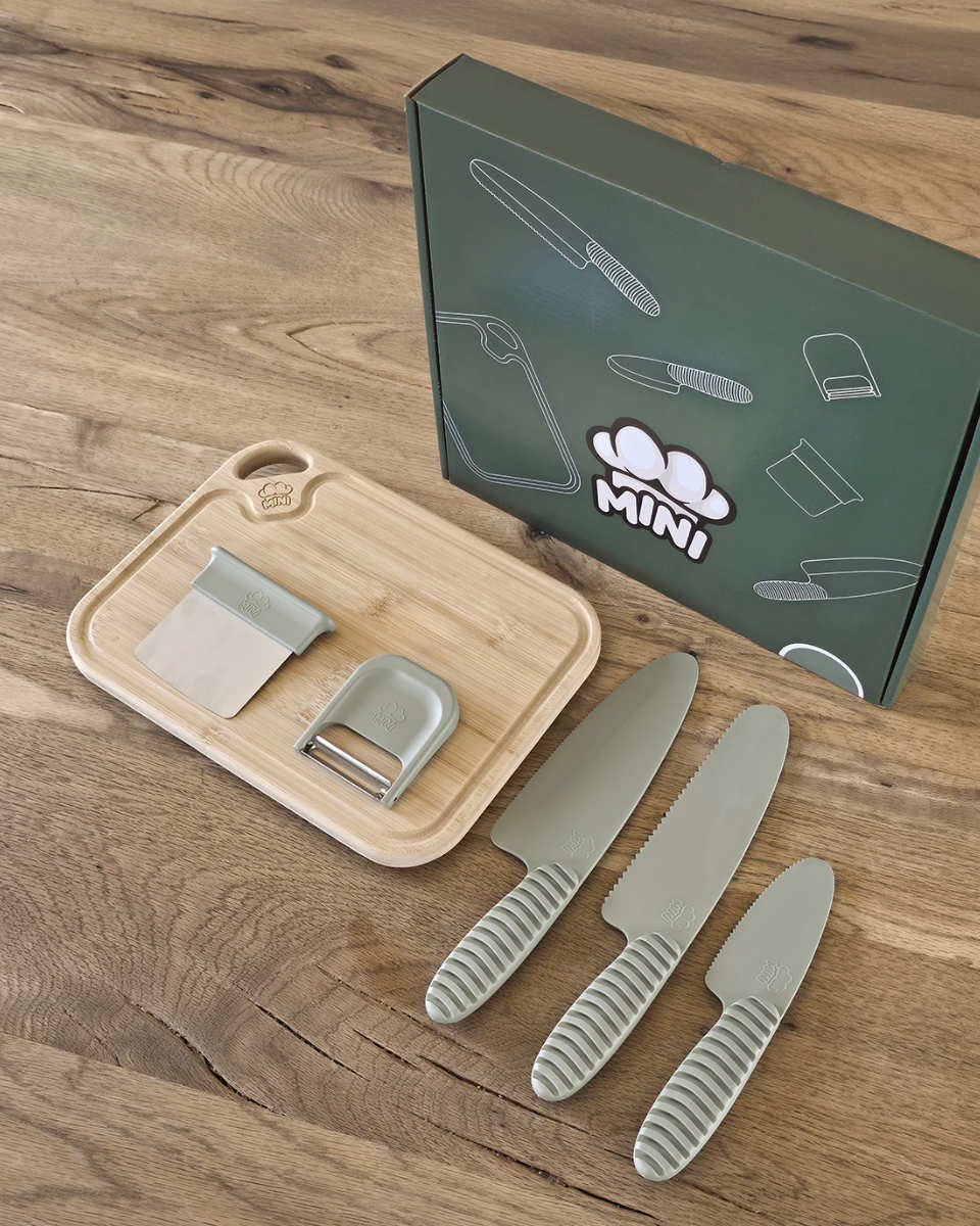 Das MINI Family Küchenset für Kinder ist mehr als nur ein Set aus Messer, Sparschäler, Hacker und Schneidebrett. Es ist ein Werkzeug, das dein Kind befähigt, selbst aktiv zu werden, Verantwortung zu übernehmen und dabei Freude am Entdecken zu haben.